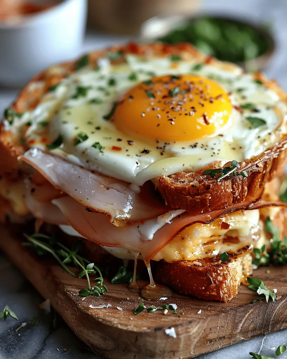 The Croque Madame is a quintessential French dish that tantalizes taste buds with its delightful combination of crispy bread, creamy béchamel sauce, and savory fillings. Imagine indulging in layers of flavor, with each bite perfectly balancing the richness of Chicken Ham and Turkey Bacon against the velvety backdrop of melted cheese. It’s no wonder that this dish has captured the hearts of many—both locals and tourists alike—throughout France!