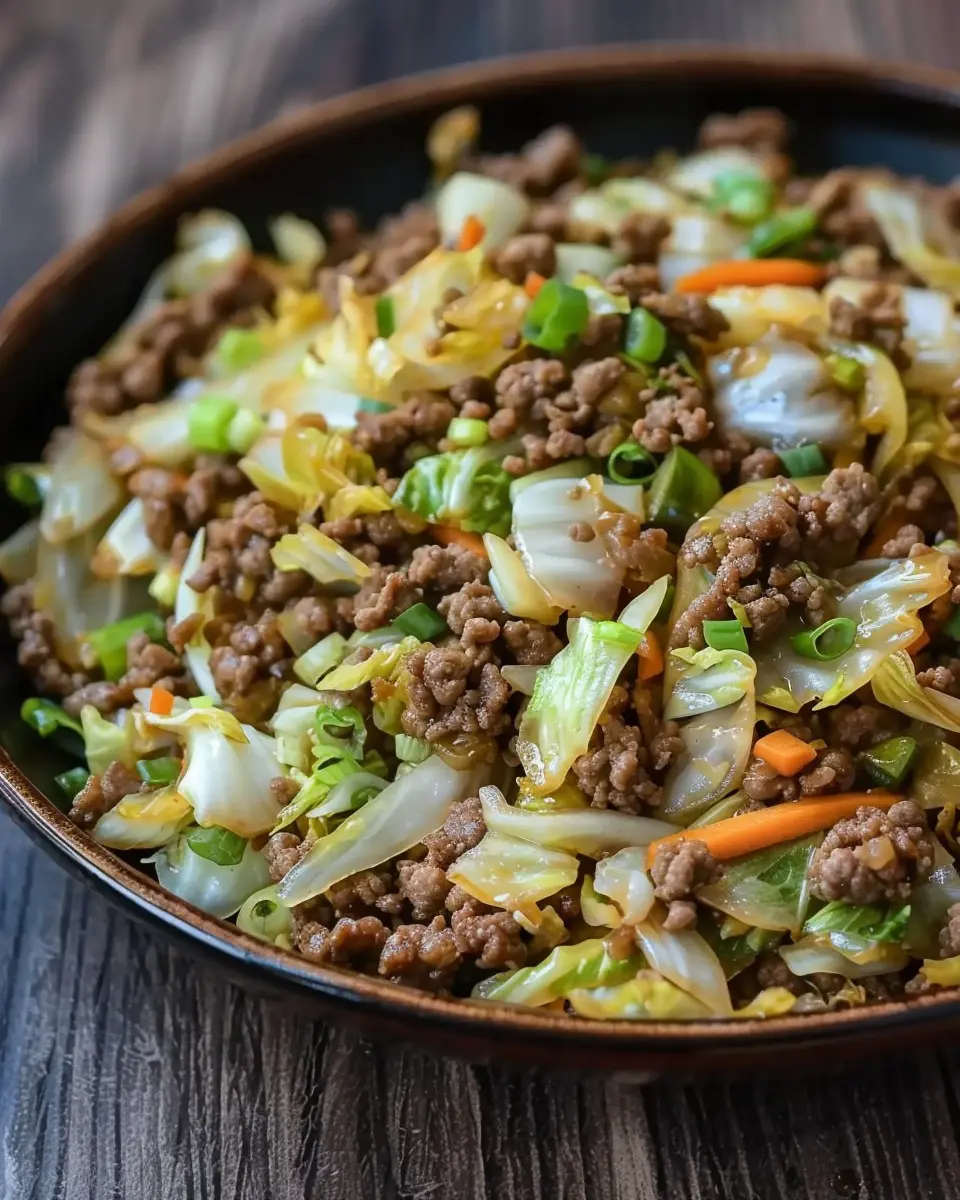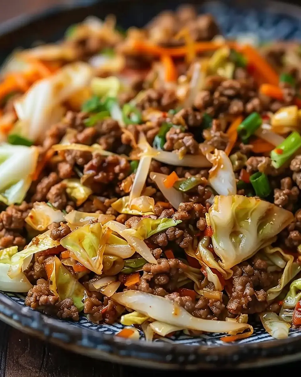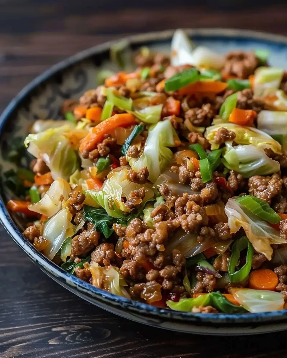 A delicious and nutritious stir fry featuring lean ground beef and fresh cabbage, perfect for a quick weeknight dinner.