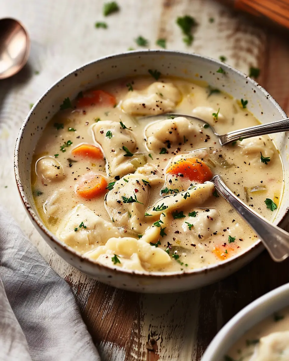 Keywords: Dairy-Free, Chicken, Dumpling Soup, Hearty, Comfort Food