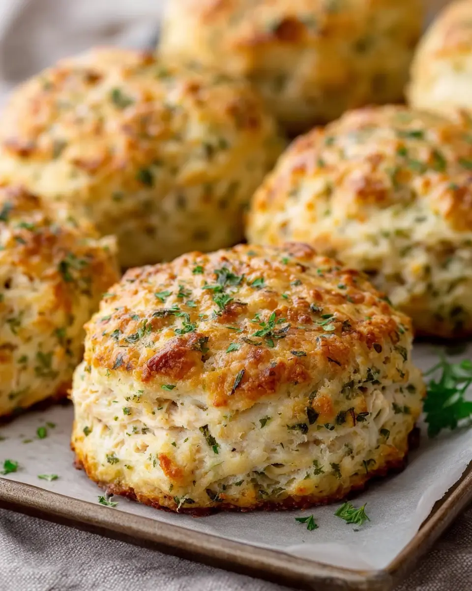 Get ready to impress your friends and family with these delightful herbed chicken biscuits!
