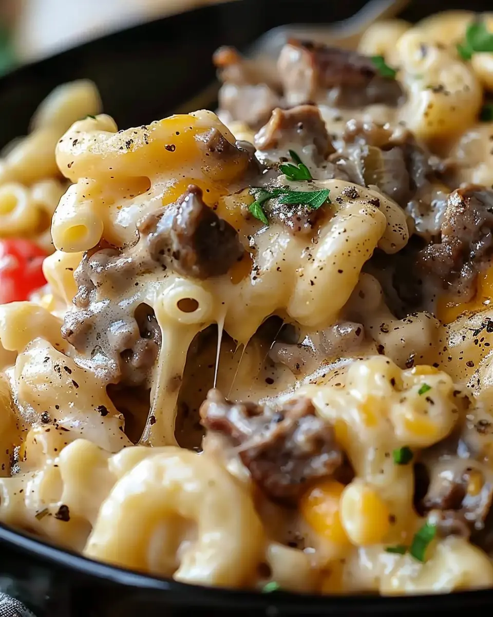 PrintHigh-Protein Creamy Philly Cheesesteak Mac Cheese Bliss Recipe