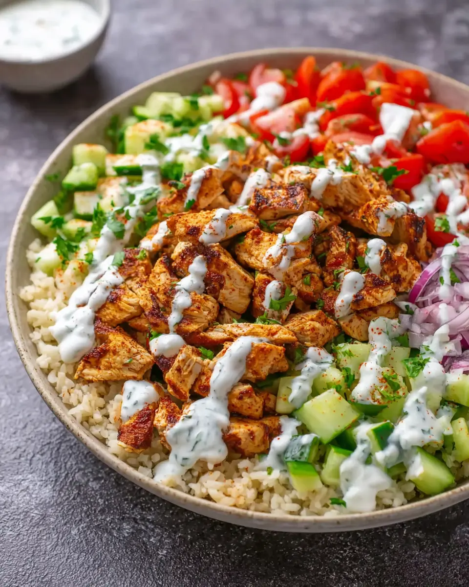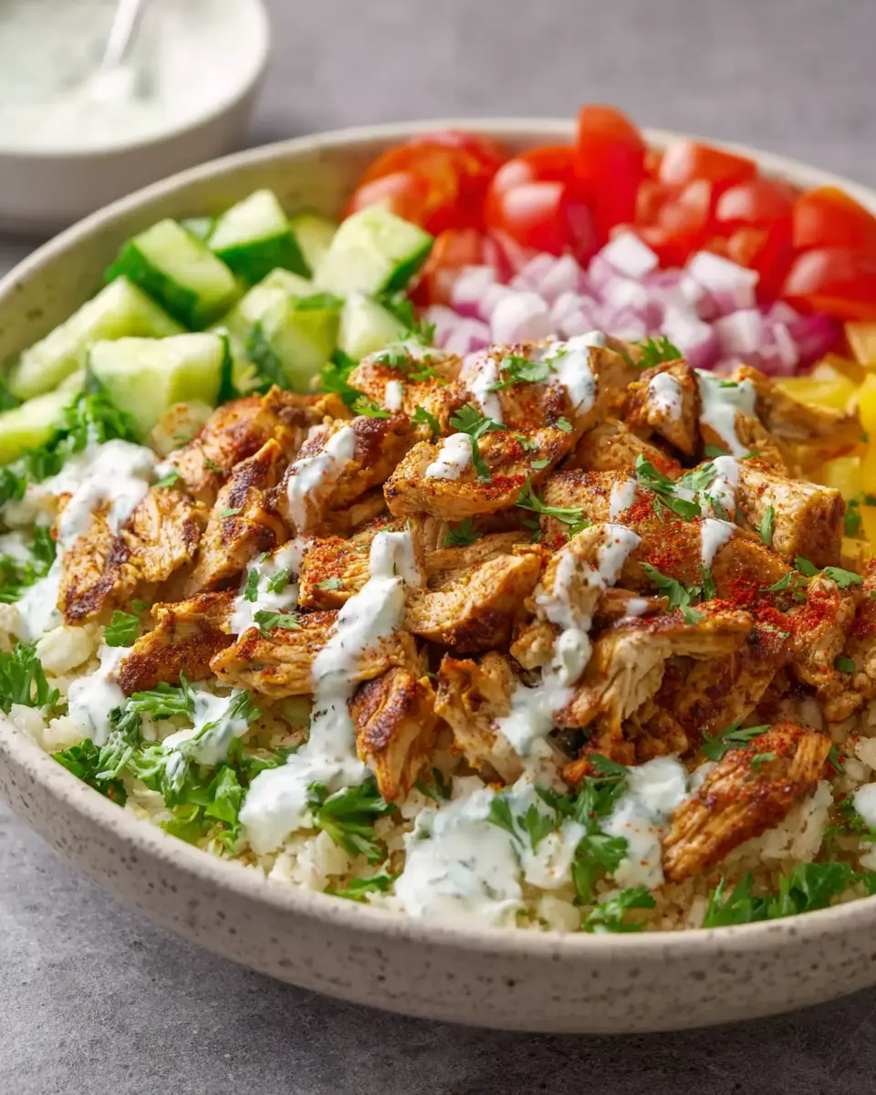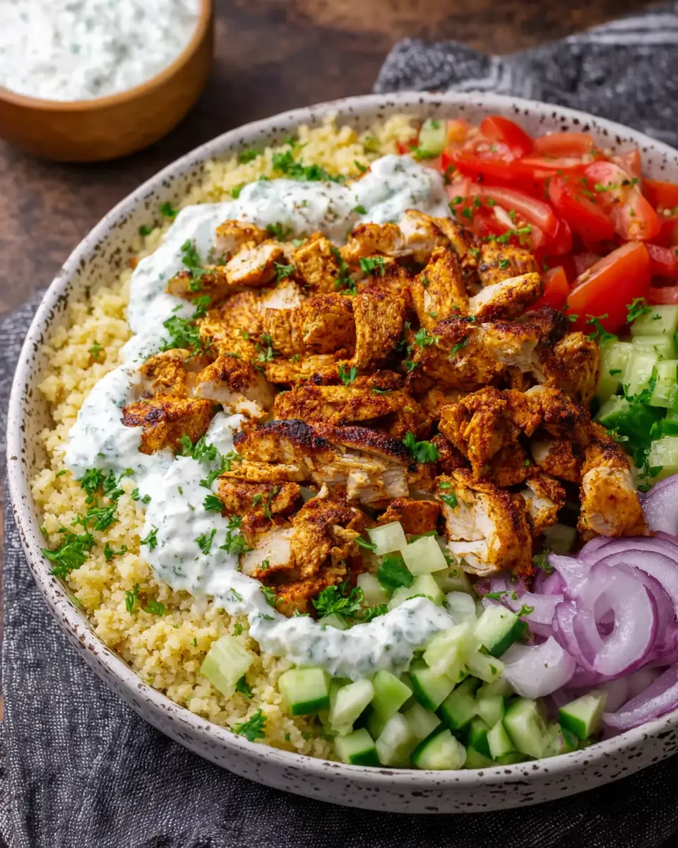 A delicious and easy homemade chicken shawarma bowl for flavor lovers.