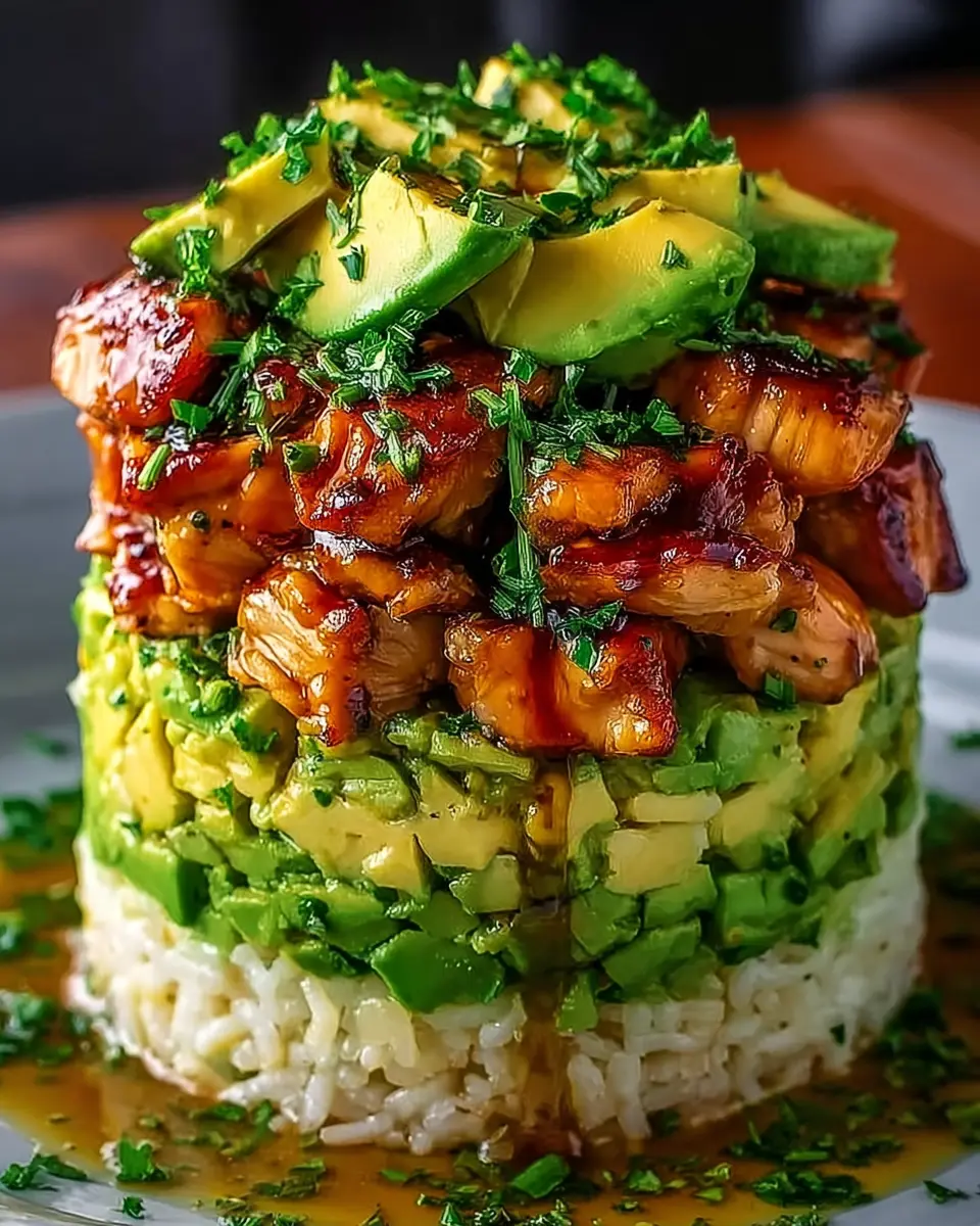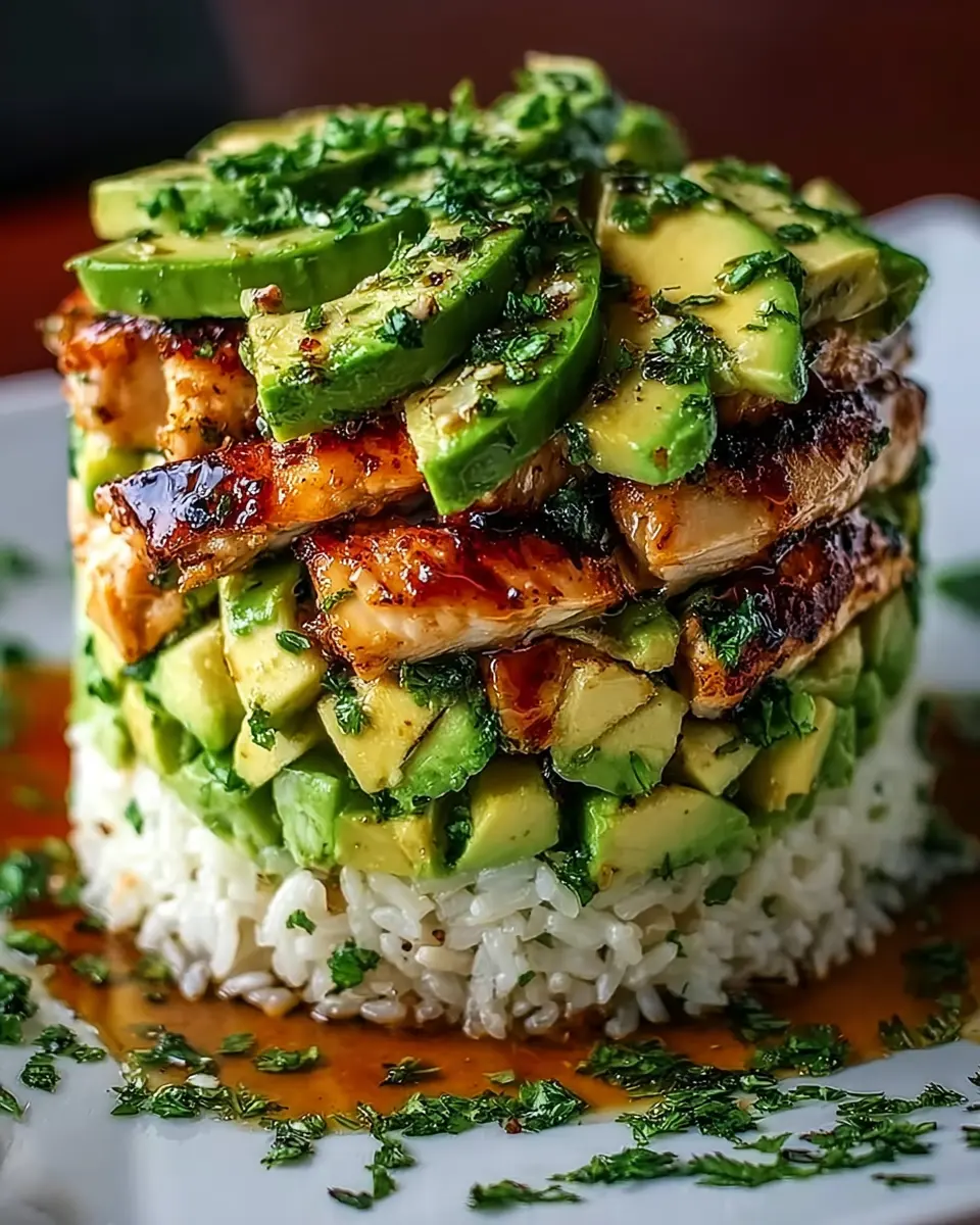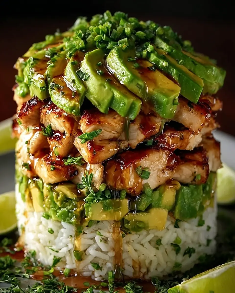 PrintHoney Lime Chicken and Avocado Rice Stack: A Fresh Delight