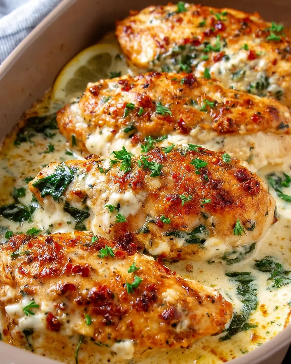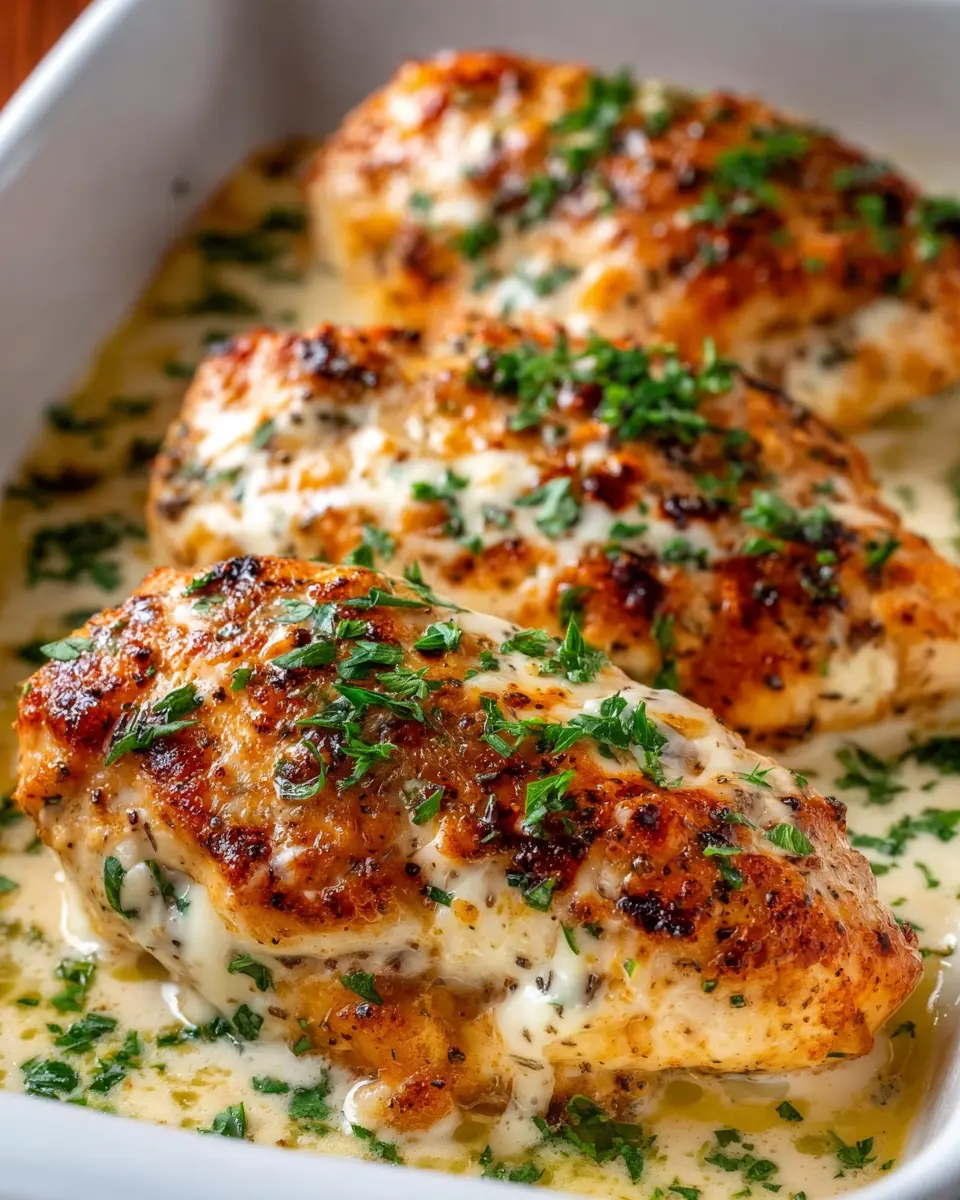 Let the dish rest for a few minutes after pulling it out of the oven. This allows the juices to redistribute throughout the chicken, ensuring moist and tender bites. For a finishing touch, sprinkle some chopped fresh parsley on top for a burst of color and freshness.