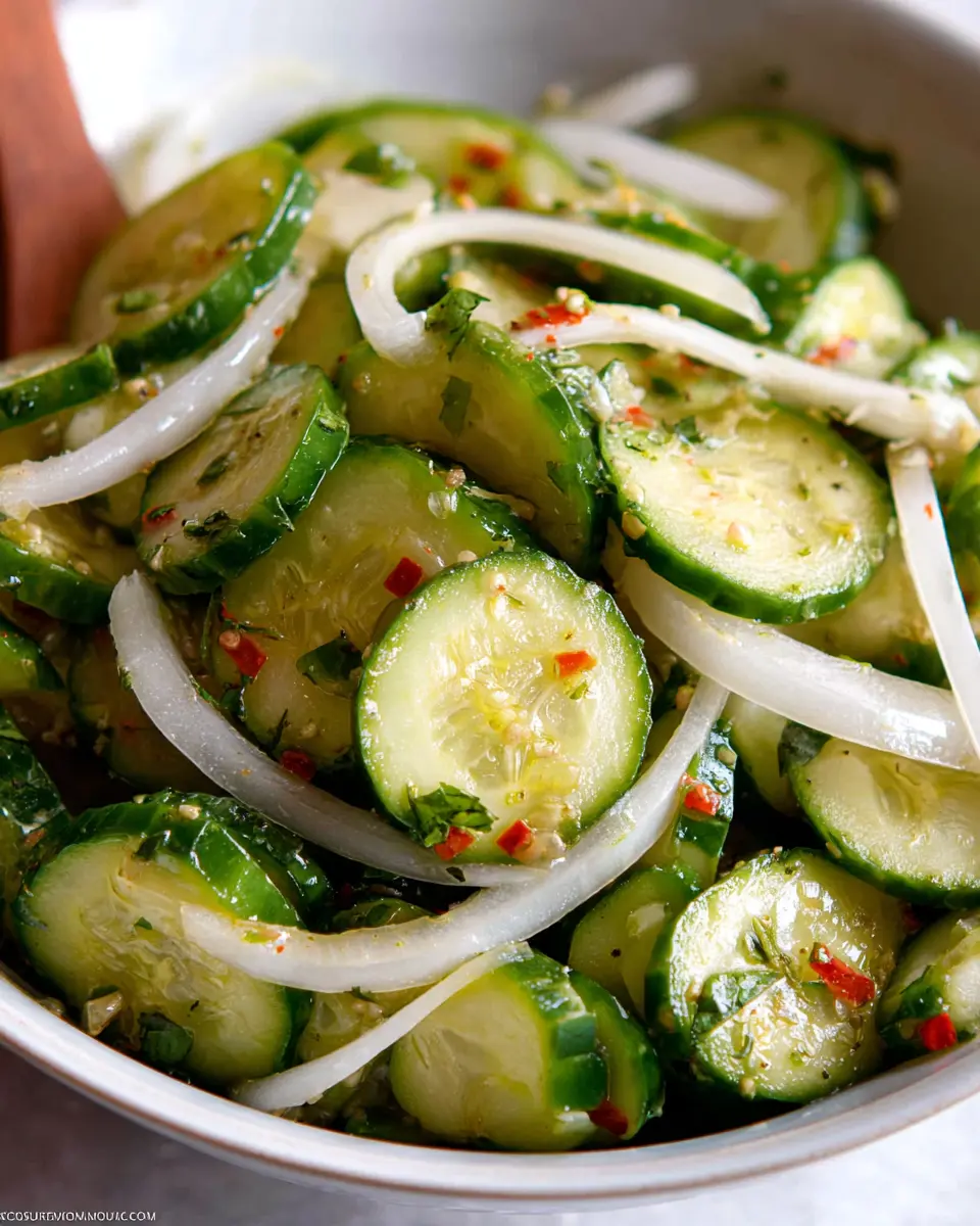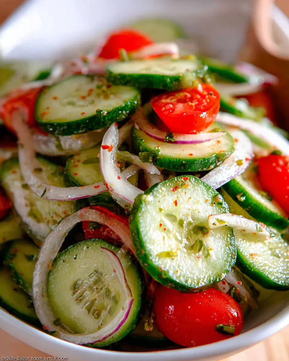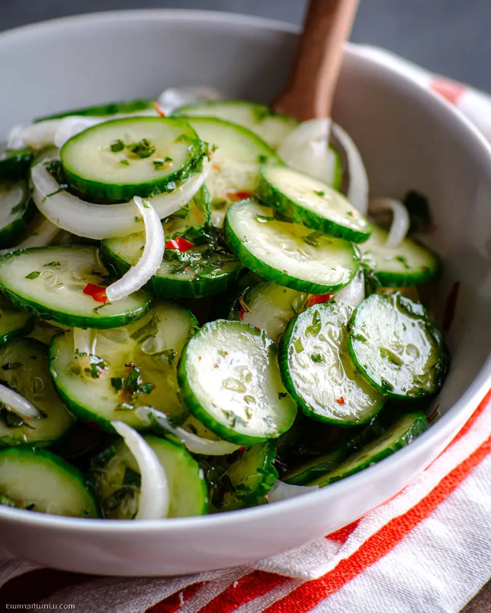 If you’re craving something vibrant and bold, try a Mediterranean-style Italian Cucumber Salad. This version incorporates a medley of ingredients that elevate the classic recipe. Start with your base of cucumbers and add: