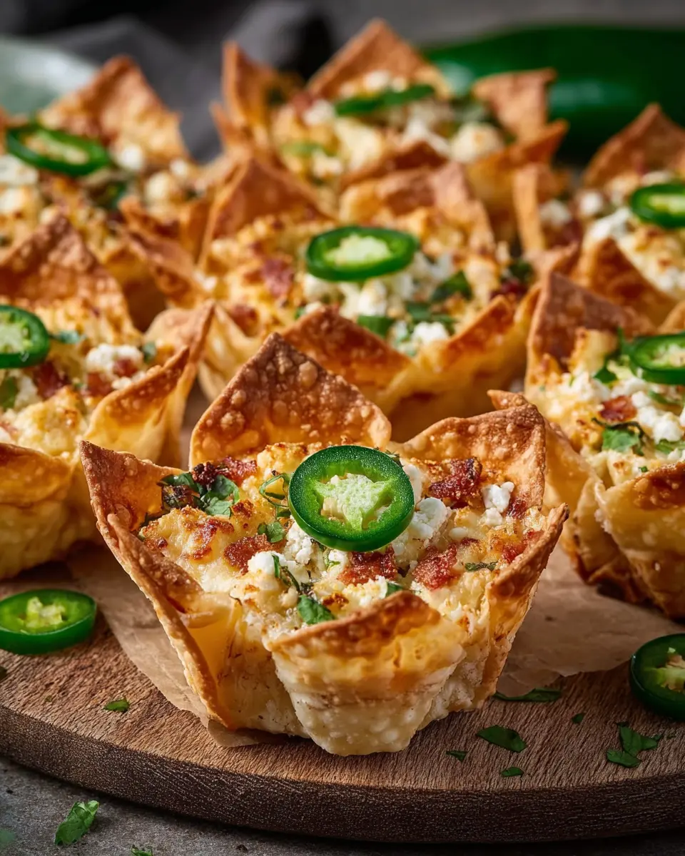 Absolutely! One of the great things about jalapeno popper wonton cups is their versatility regarding prep. You can assemble the wonton cups and fill them ahead of time. Just cover them tightly with plastic wrap and refrigerate them for up to a day. When you’re ready to enjoy, pop them in the oven for about 15-20 minutes until they’re golden and crispy.