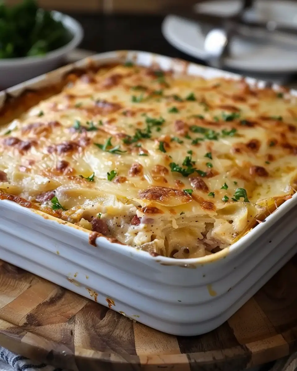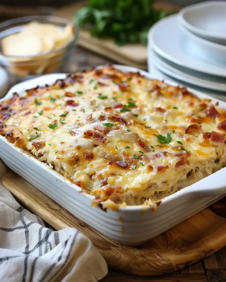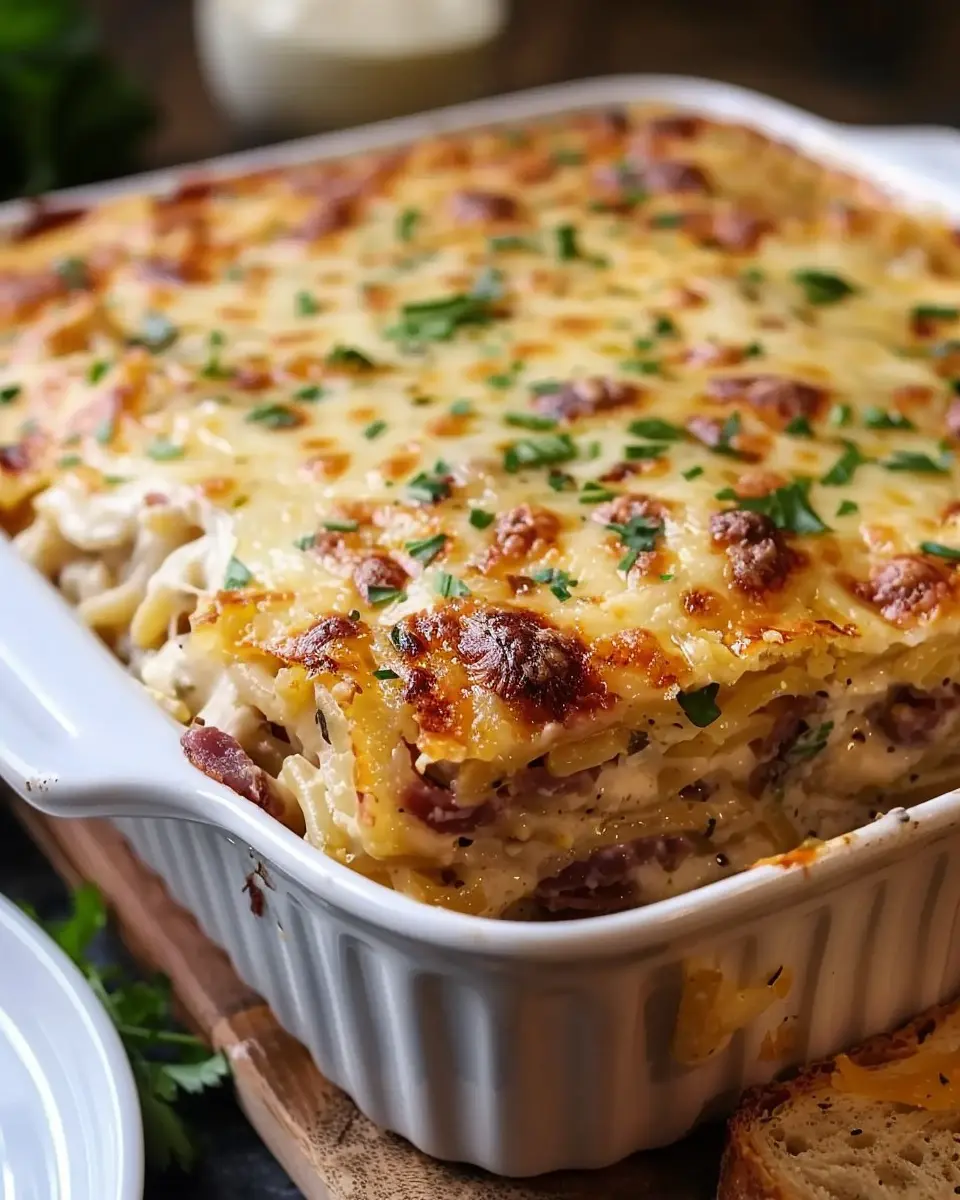 The layered Reuben casserole bake is a delightful twist on a classic deli favorite that promises to impress your taste buds. Picture tender layers of chicken ham, turkey bacon, and gooey cheese melted to perfection. This dish is not just about great taste; it’s also about ease and versatility, making it ideal for bustling weeknights or cozy gatherings.