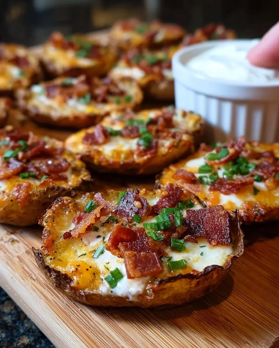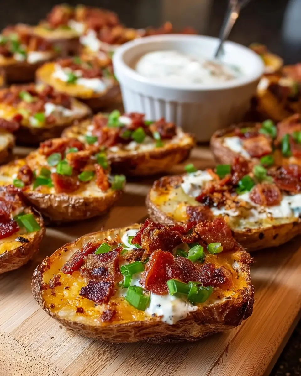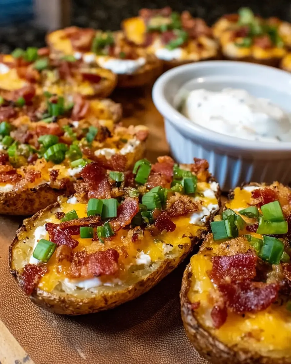 Turkey Bacon Crumbles: For an added crunch and savory bite, sprinkle some crispy turkey bacon on top of your potato skins. It brings a satisfying contrast that will have your guests coming back for seconds!