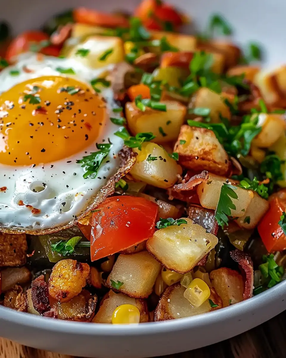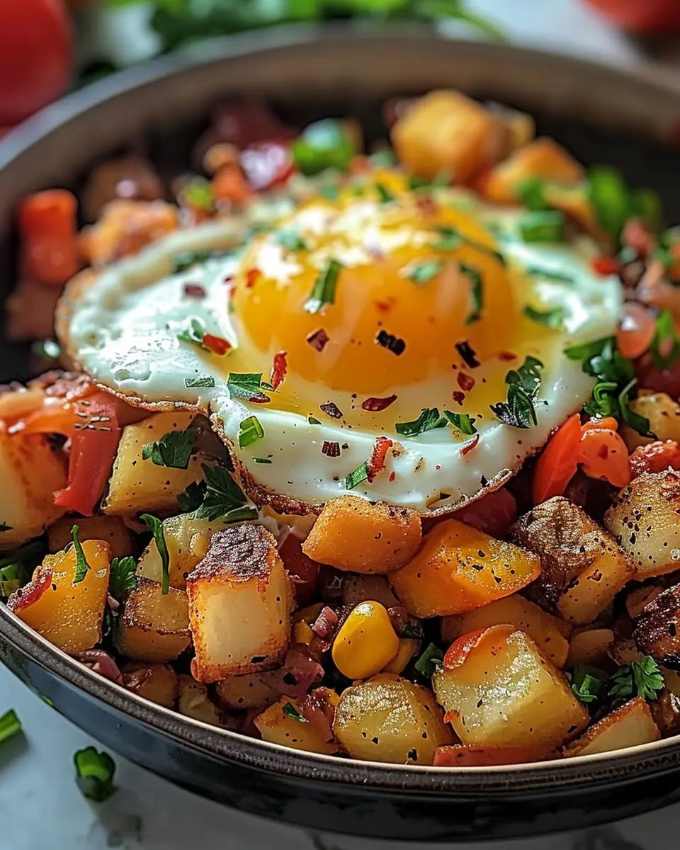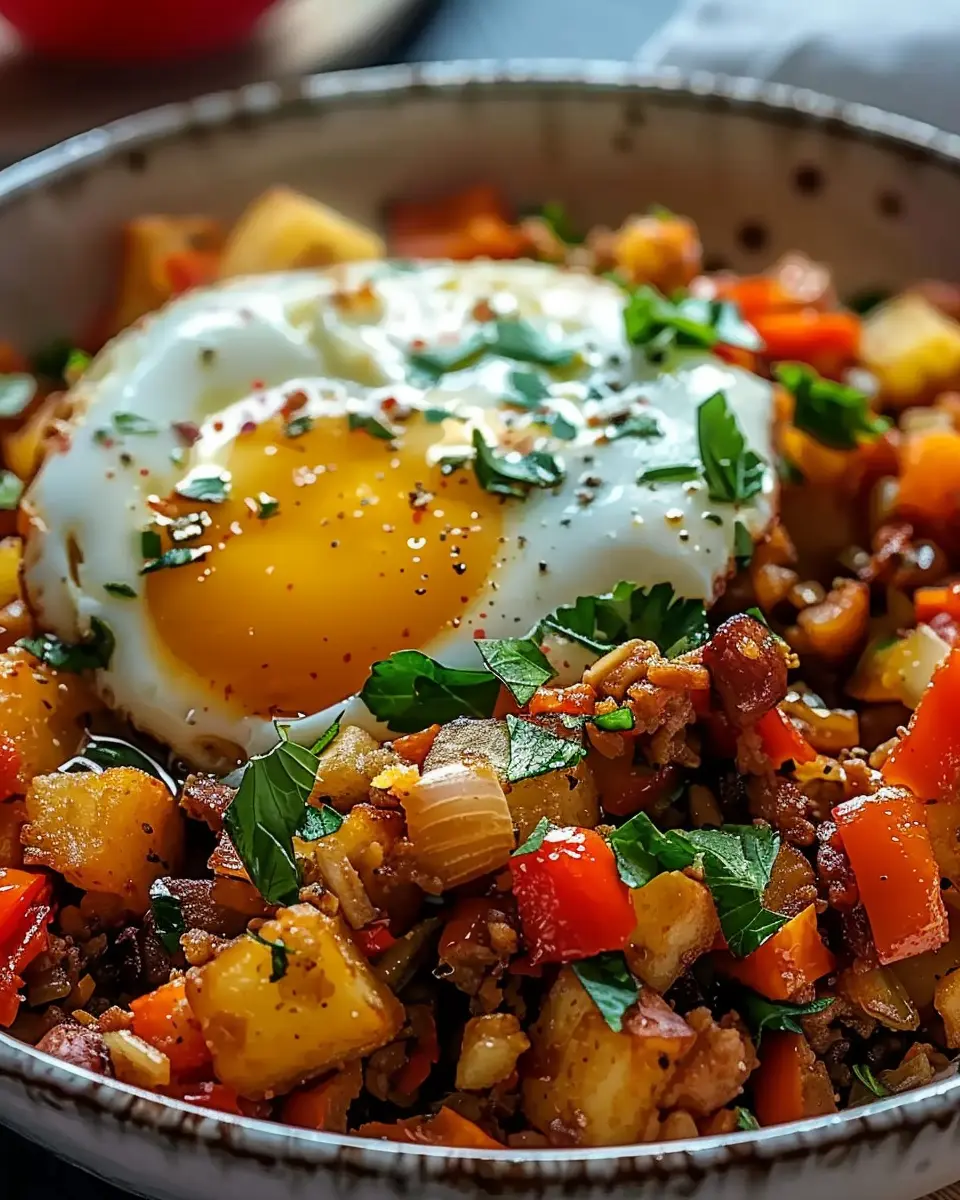 Since breakfast wouldn’t be complete without eggs, you have a couple of options. You can either scramble them directly into the hash or fry them separately. If you choose to fry, cook them sunny-side up for that beautiful runny yolk. Either way, the eggs will add a delightful richness to the dish.