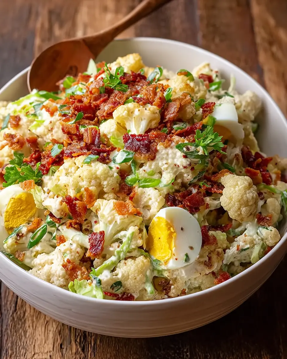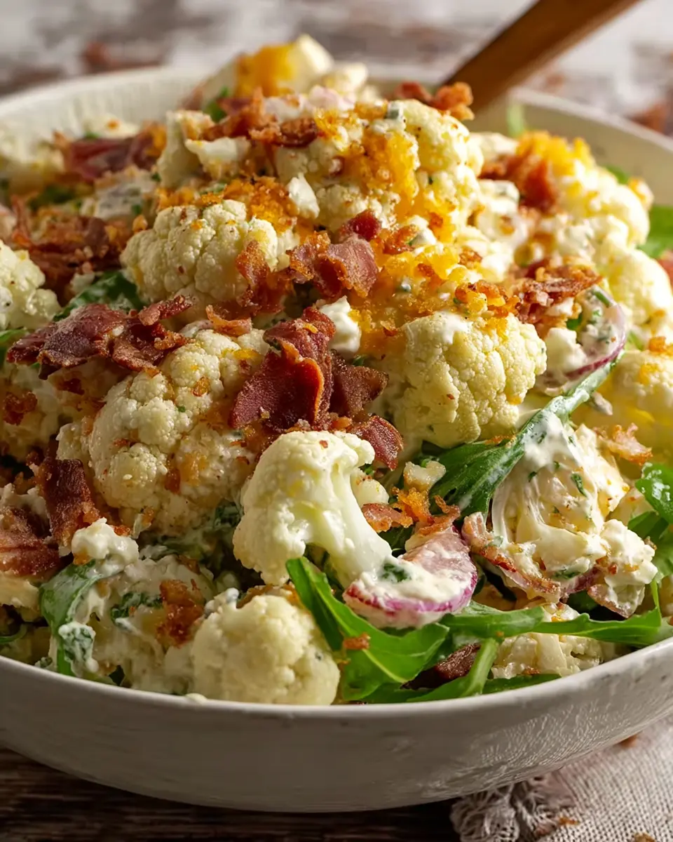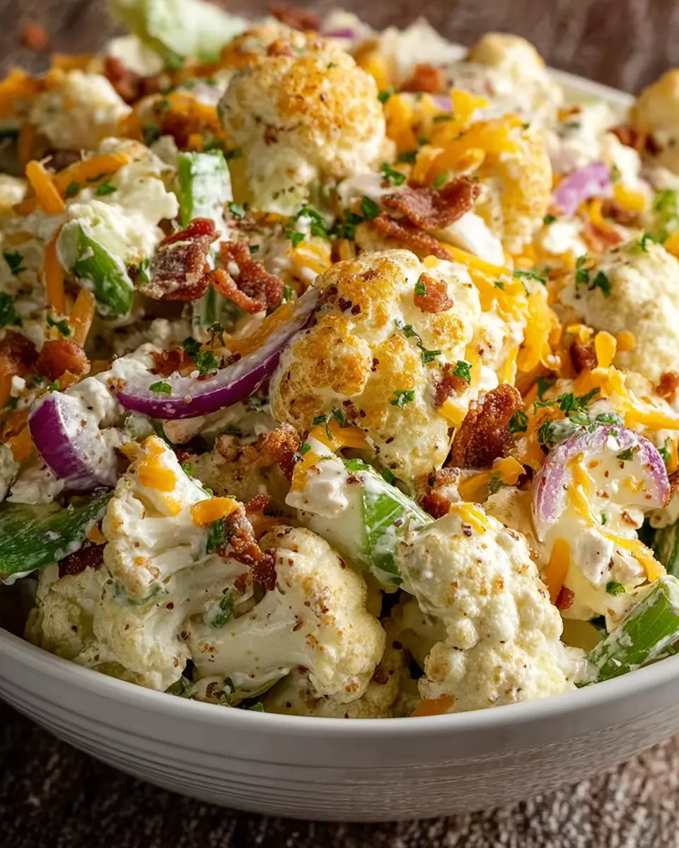 PrintLoaded Cauliflower Salad: A Deliciously Healthy Twist with Turkey Bacon