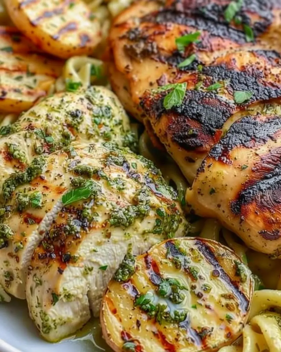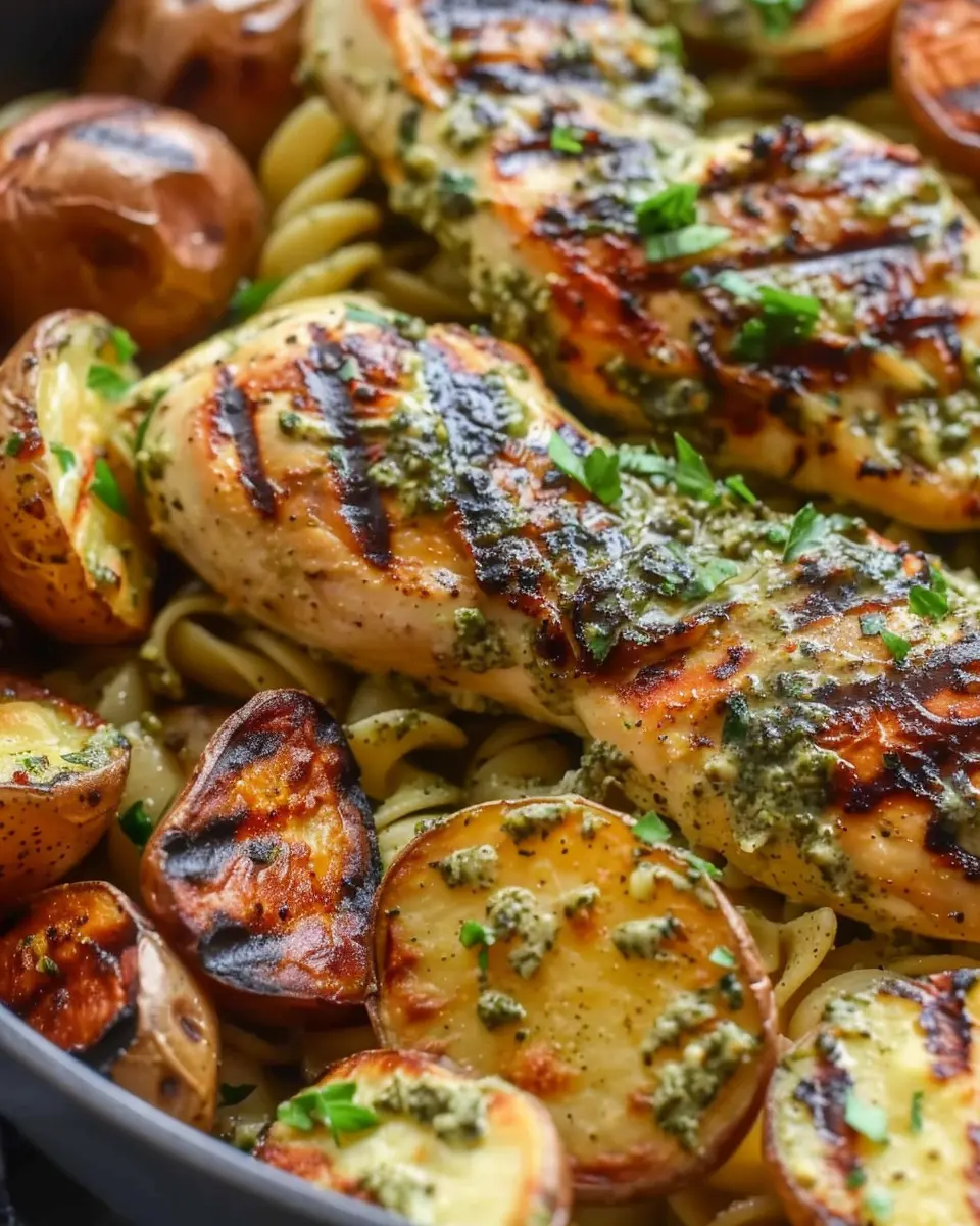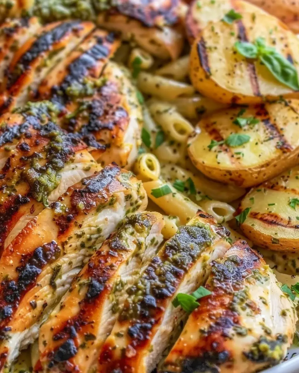 PrintLoaded Herb Grilled Chicken with Creamy Pesto Pasta & Roasted Potatoes: A Juicy Delight for Home Cooks