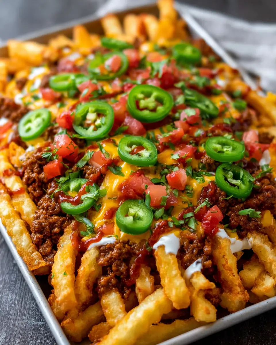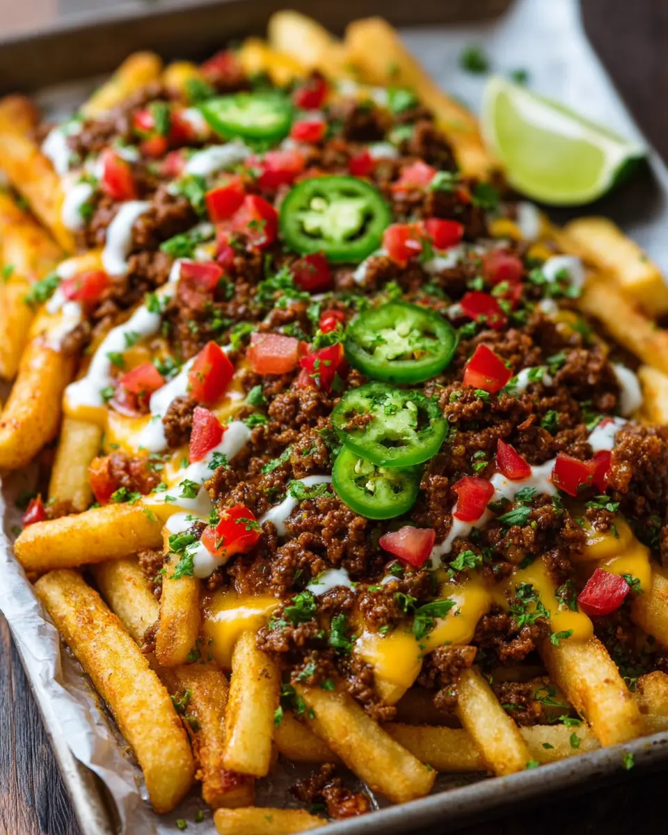 In summary, loaded taco fries are more than just a meal; they’re a sensational experience you can create at home. Perfect for casual gatherings or a cozy night in, this dish allows for maximum creativity. Picture diving into a plate topped with seasoned beef, chicken ham, fresh veggies, and a drizzle of zesty sauce that sings with flavor.