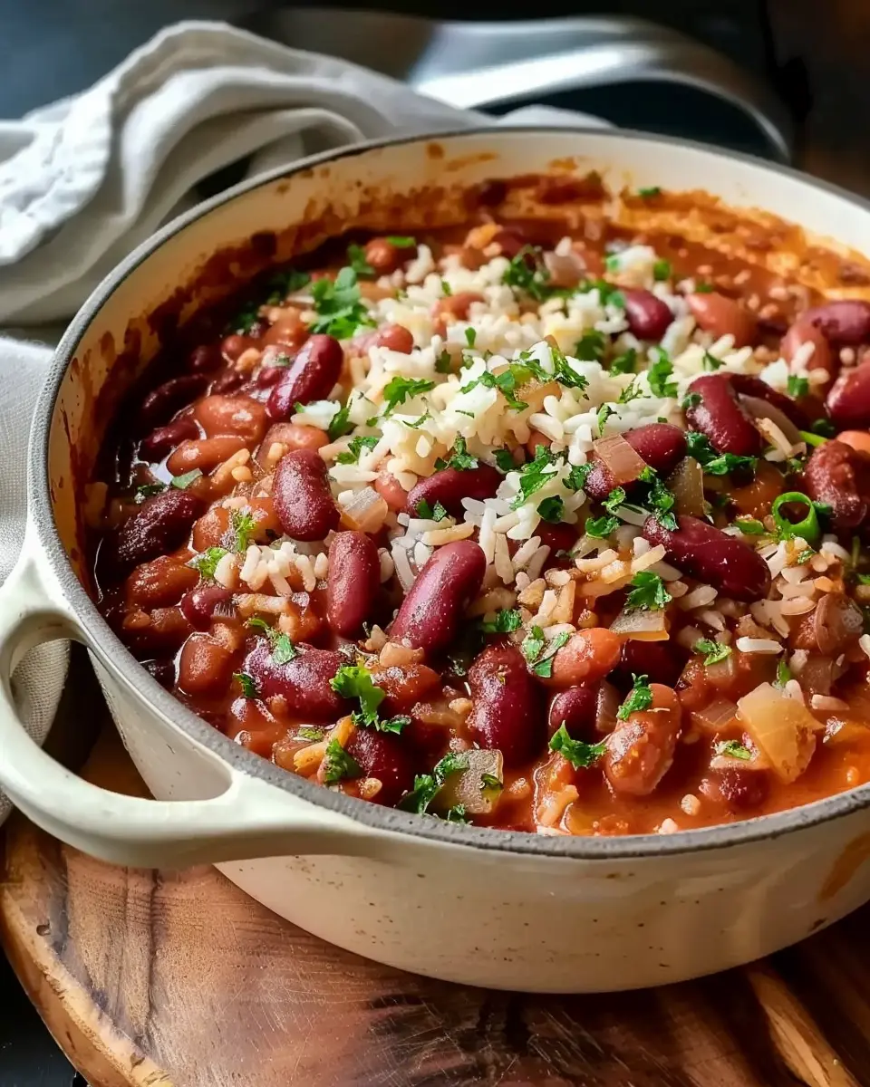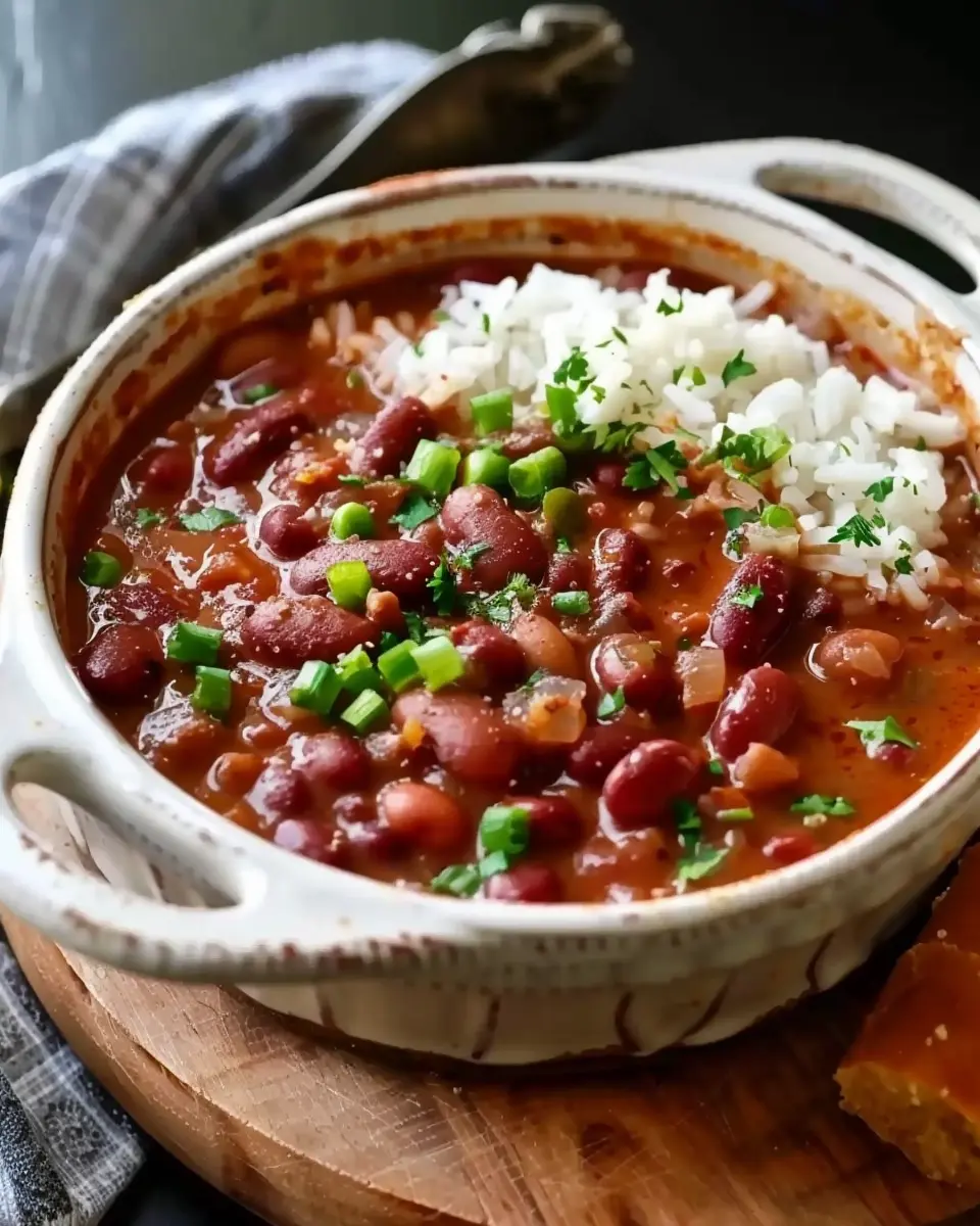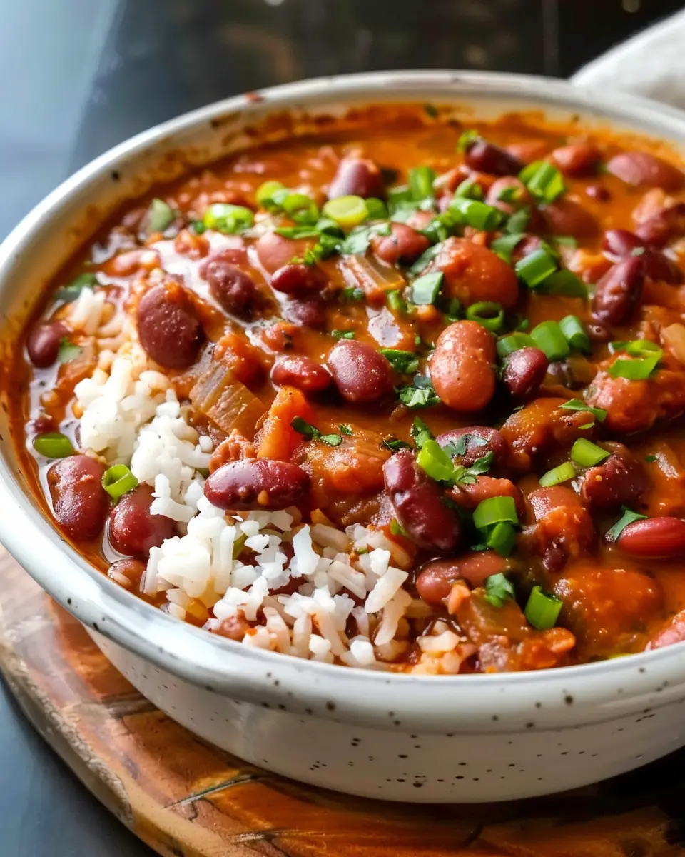 PrintLouisiana Red Beans and Rice: A Comforting Turkey Bacon Delight