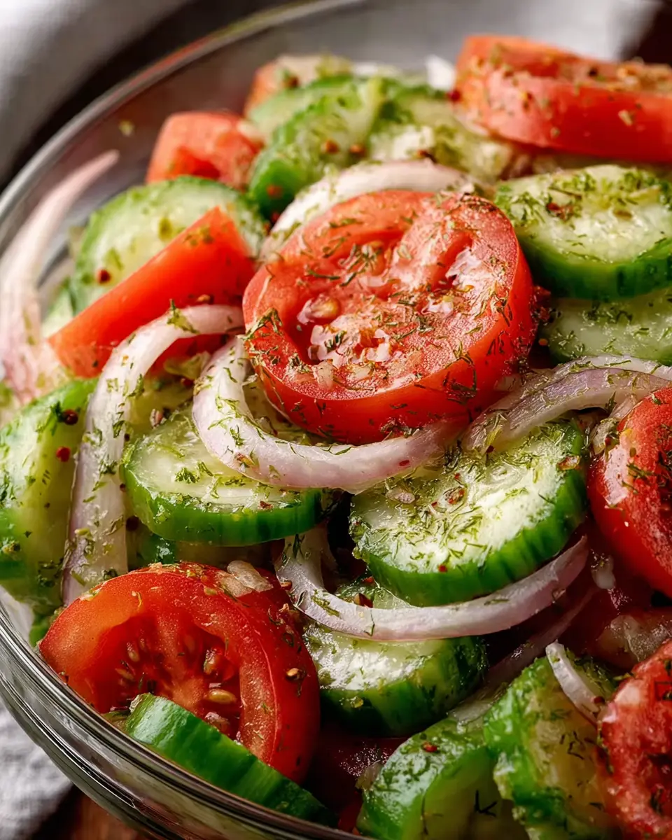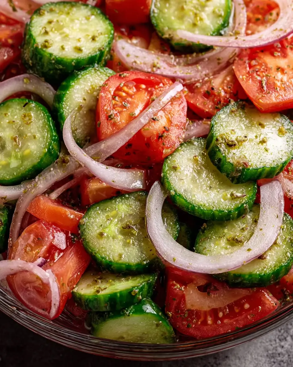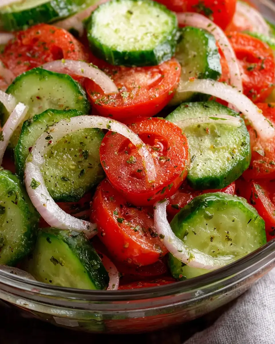 Marinated cucumbers, onions, and tomatoes are not only delicious but also packed with nutrients. With their vibrant colors and fresh flavors, they can brighten up any meal. The health benefits are impressive; tomatoes are rich in antioxidants, while cucumbers keep you hydrated. If you haven’t tried this easy recipe yet, now’s the perfect time!