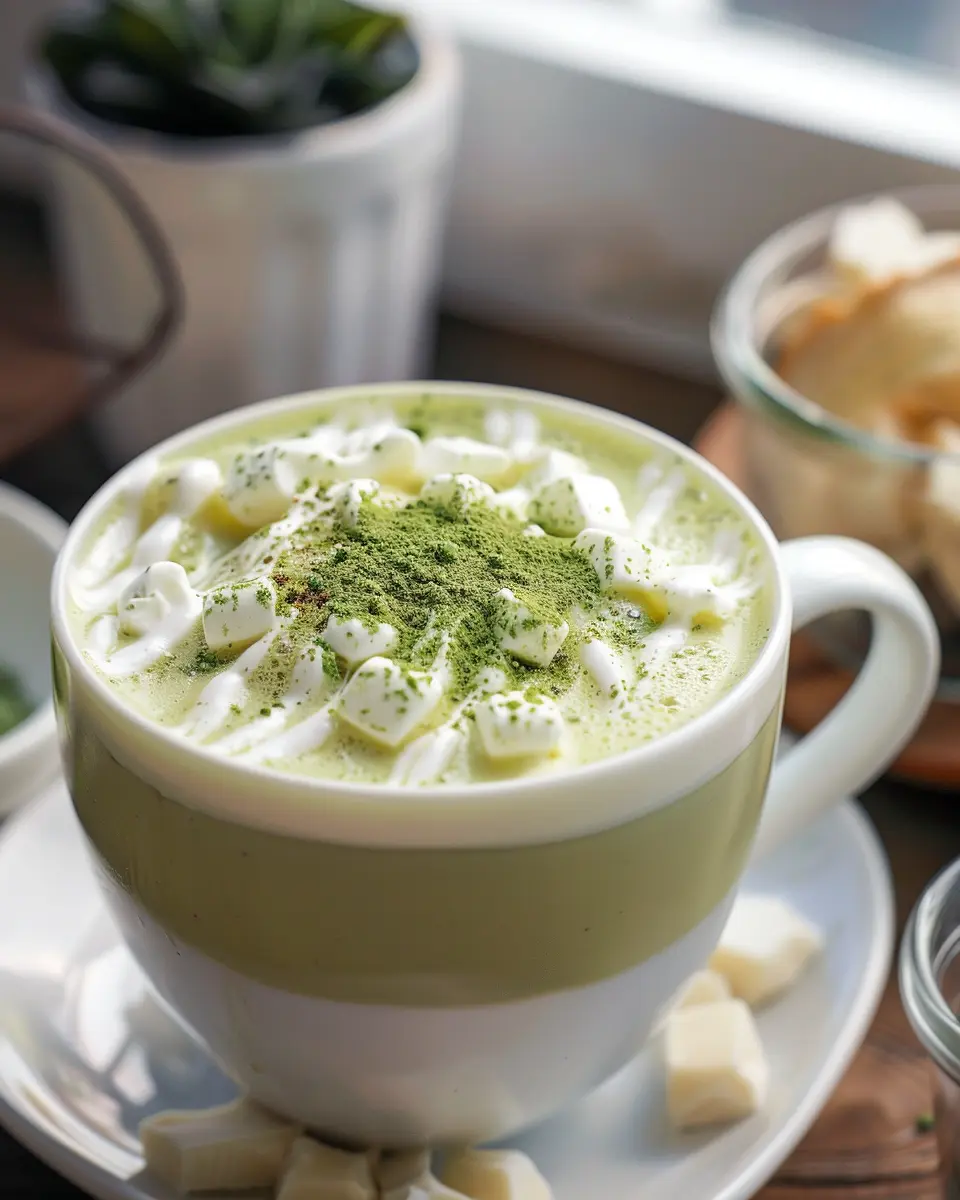 Keywords: Matcha White Hot Chocolate, cozy drink, winter beverage