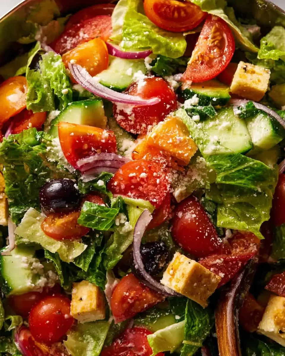 If you’re looking to make your Mega Italian Salad vegan, you can easily swap out a few ingredients to suit your dietary preferences.