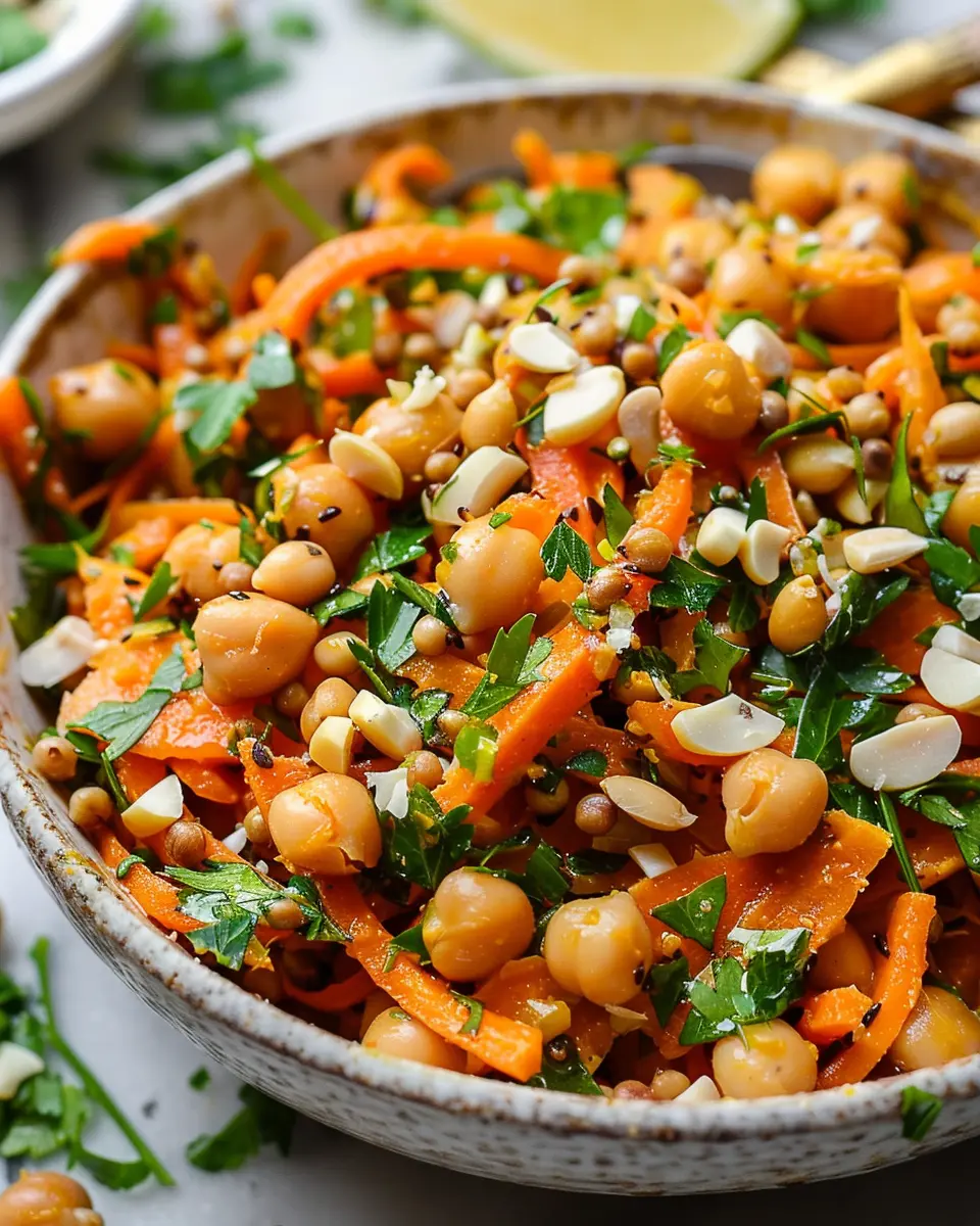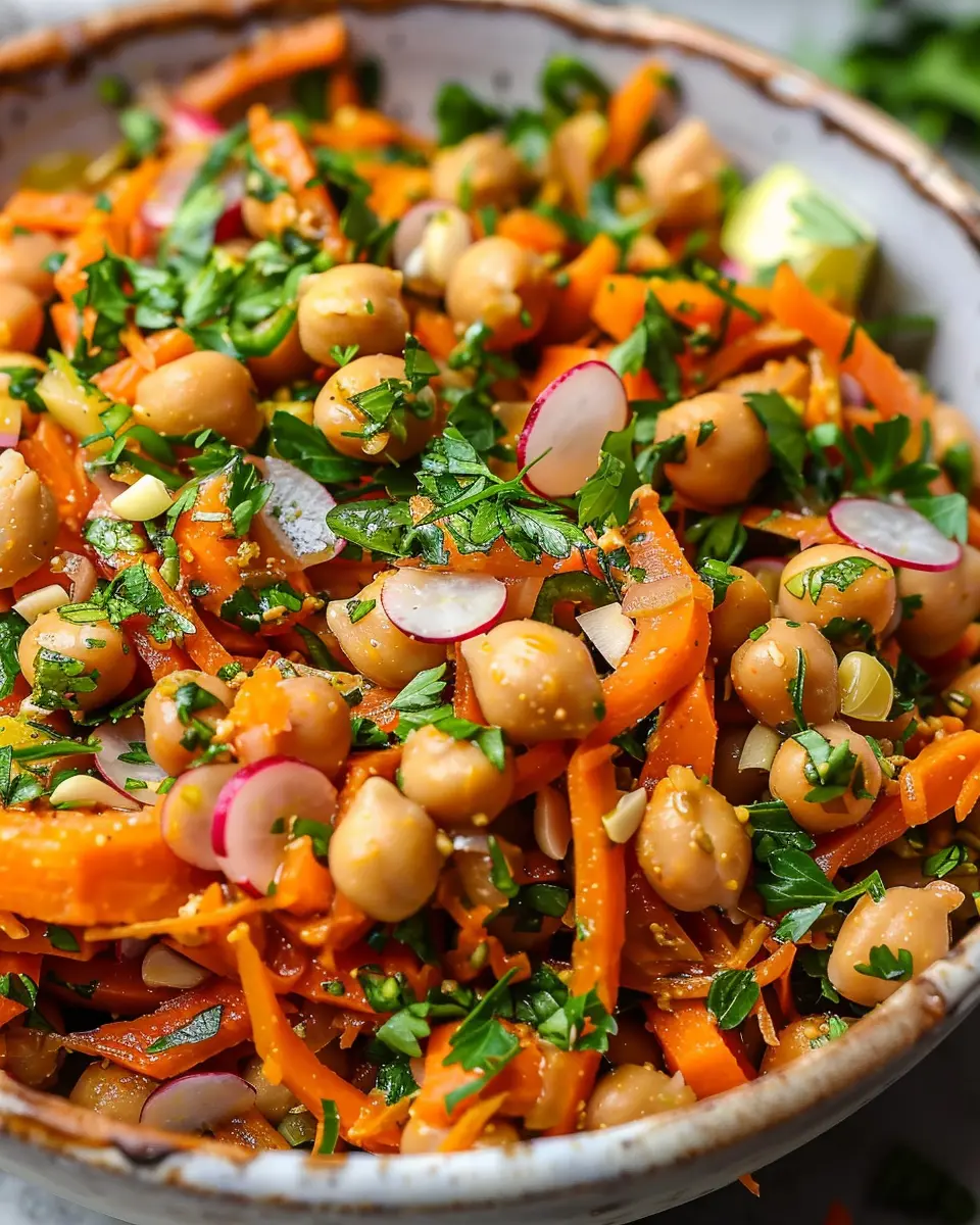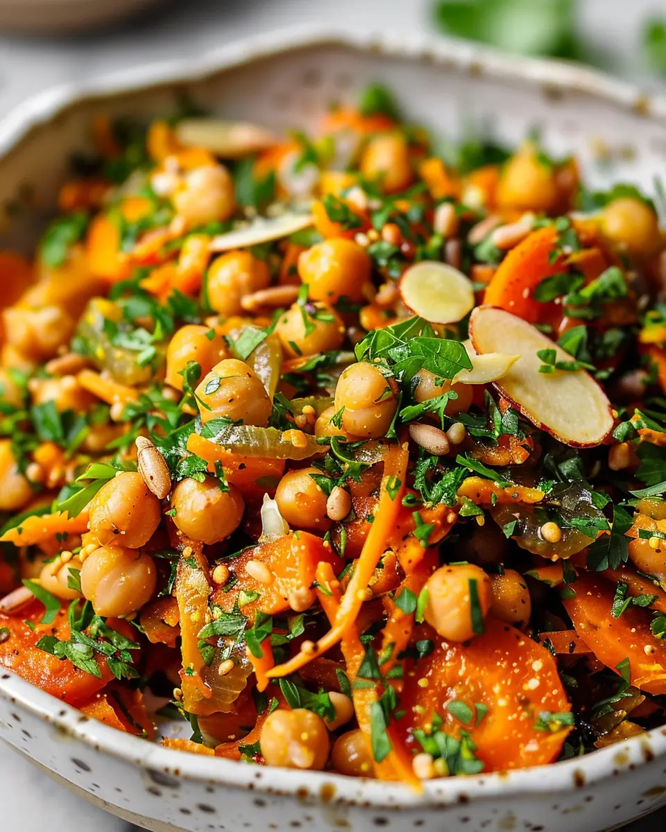 In summary, the Moroccan Carrot and Chickpea Salad is not just a vibrant dish brimming with flavor; it’s also packed with nutritional benefits. Bursting with fiber, vitamins, and plant-based protein, this salad is perfect for boosting your energy levels and keeping you feeling full throughout the day. The combination of carrots and chickpeas supports good digestion and helps maintain healthy skin—making it an ideal choice for both lunch and dinner.