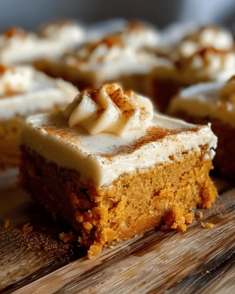Versatile and Easy to Make: Pumpkin bars are incredibly versatile. They can easily transition from a perfect dessert at a cozy gathering to a delicious snack during a busy work week. The recipe is straightforward, allowing even novice bakers to whip up a batch with minimal stress. Just think—no complicated layers or fancy decorations required!