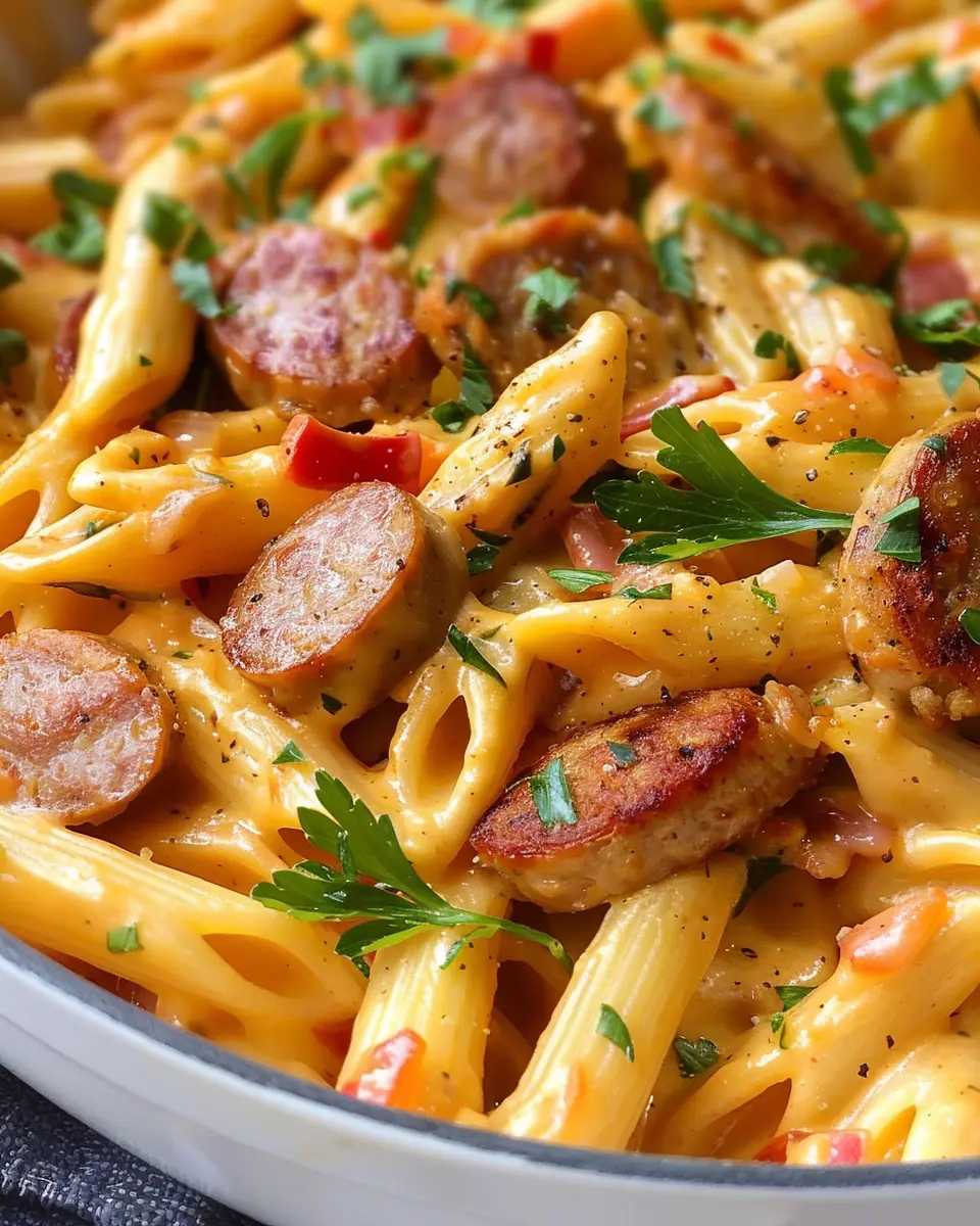 A quick and easy one-pot meal that combines creamy sauce, Cajun spices, and hearty sausage for a satisfying dish ready in just 30 minutes.