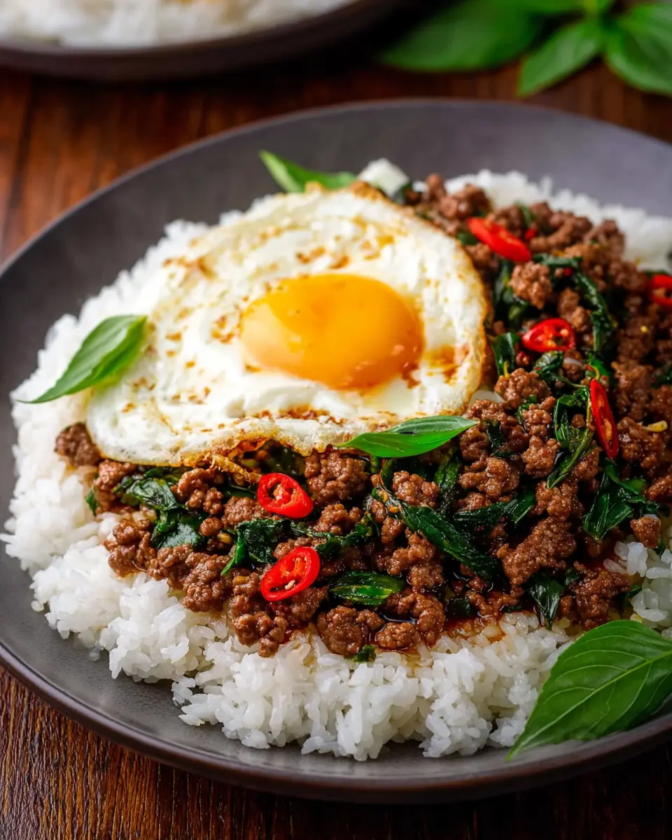 Keywords: Pad Kra Pao, Thai Basil Beef, Thai Recipes, Quick Dinner