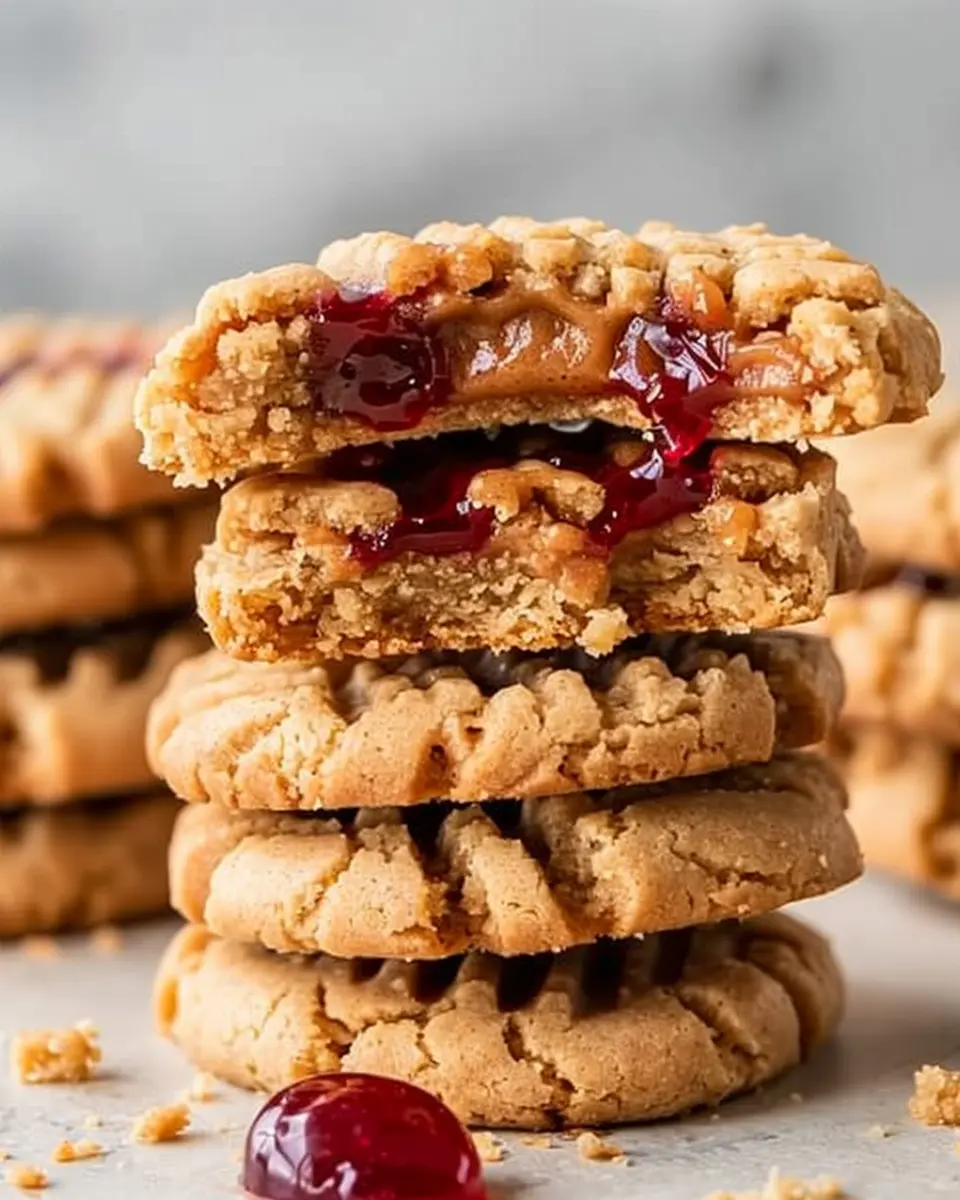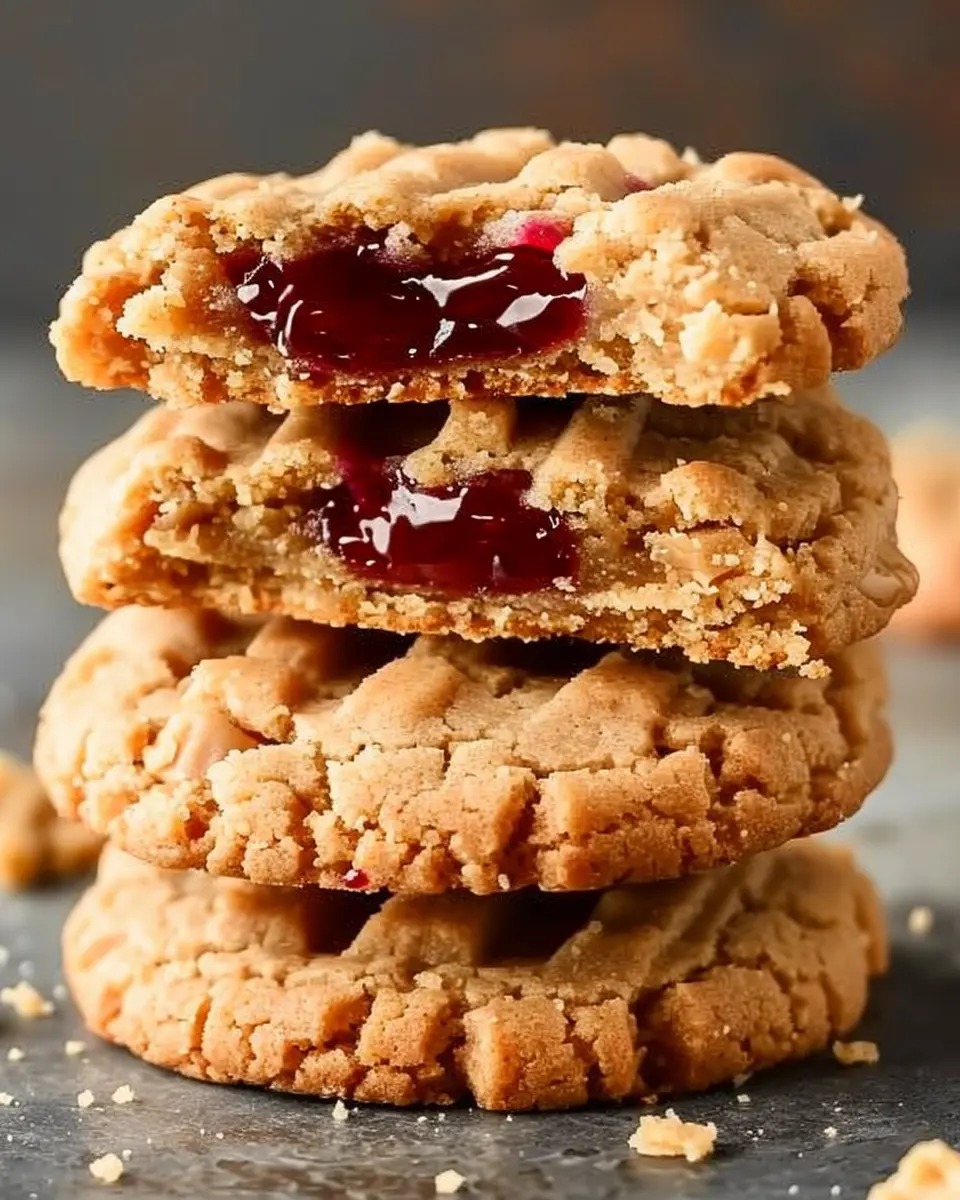 Deliciously soft and chewy peanut butter and jelly cookies that are a delightful treat for any occasion.