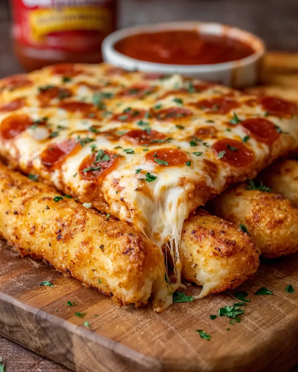 Delight in the cheesy goodness of these Pepperoni Pizza Cheese Sticks, perfect for any pizza lover!