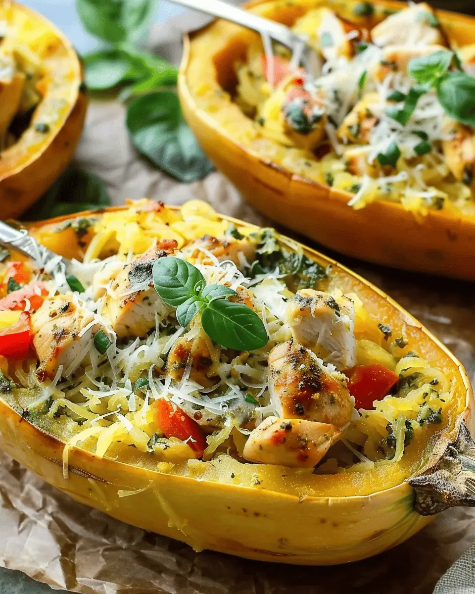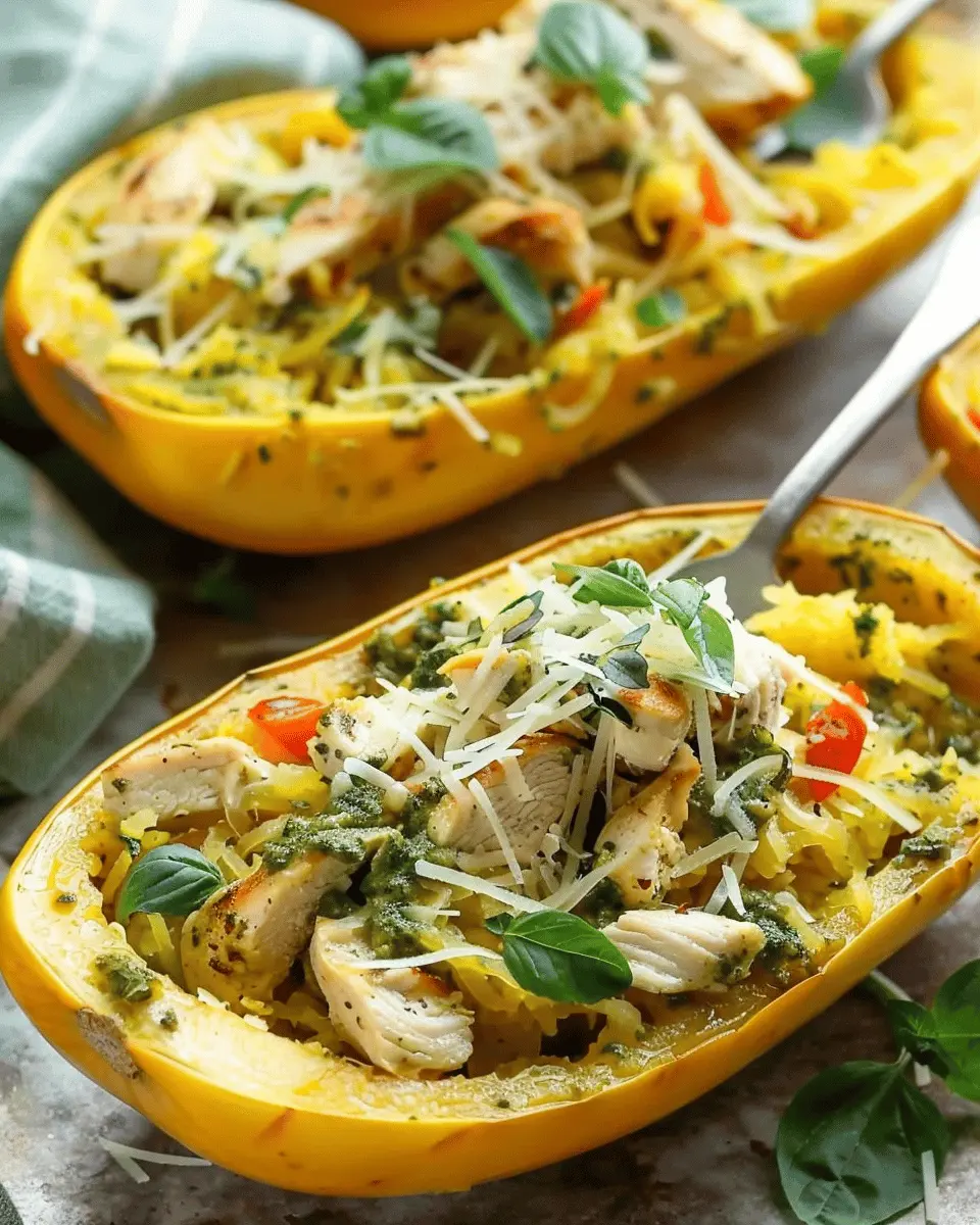 If you’re ready to elevate your dinner game with a delightful blend of flavors, this Cheesy Pesto Chicken Spaghetti Squash is just what you need. Get ready to impress your taste buds while also keeping things health-conscious. Here’s a step-by-step guide to prepare this delicious dish, ensuring every bite is packed with flavor.