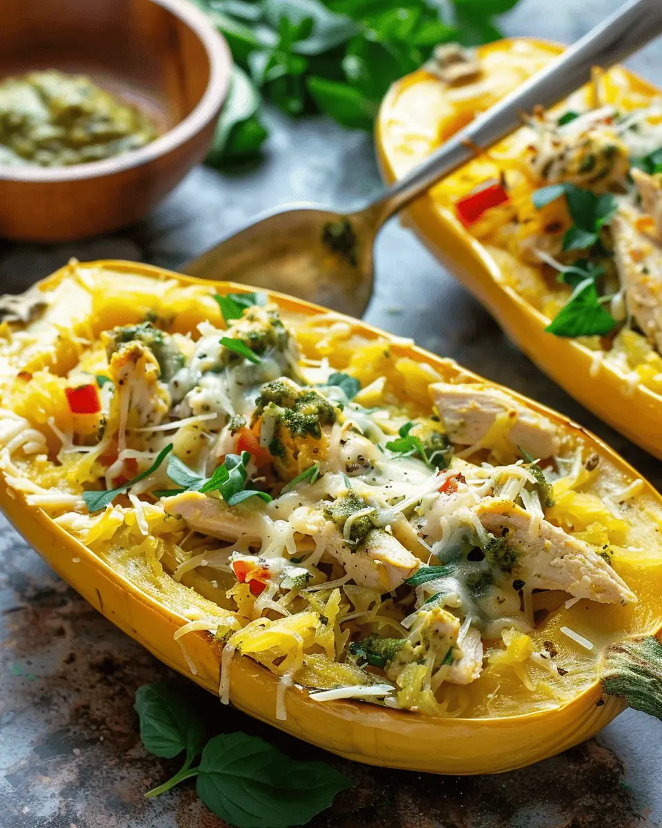 PrintPesto Chicken Spaghetti Squash: Easy and Delicious Health Boost