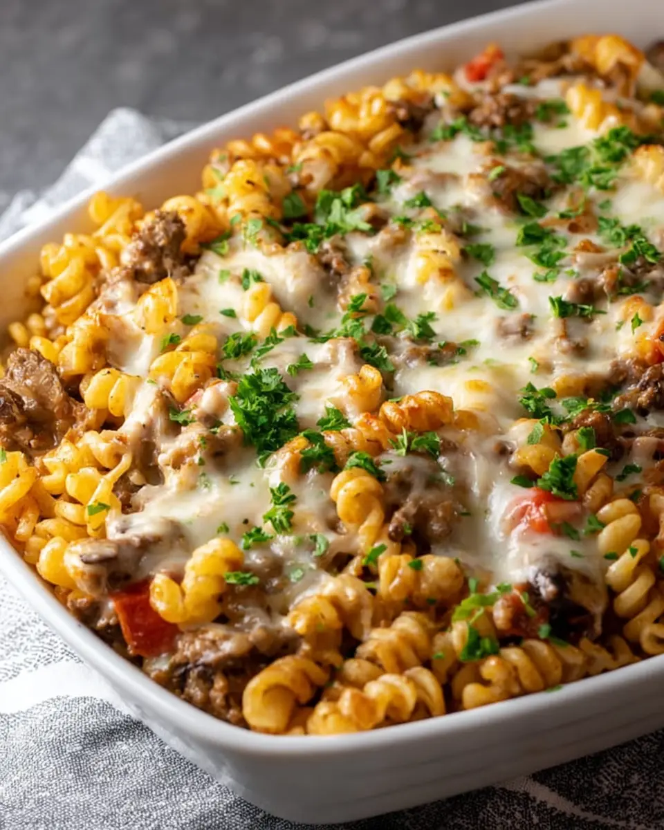 Philly Cheesesteak Pasta Casserole: Easy Comfort Food Delight