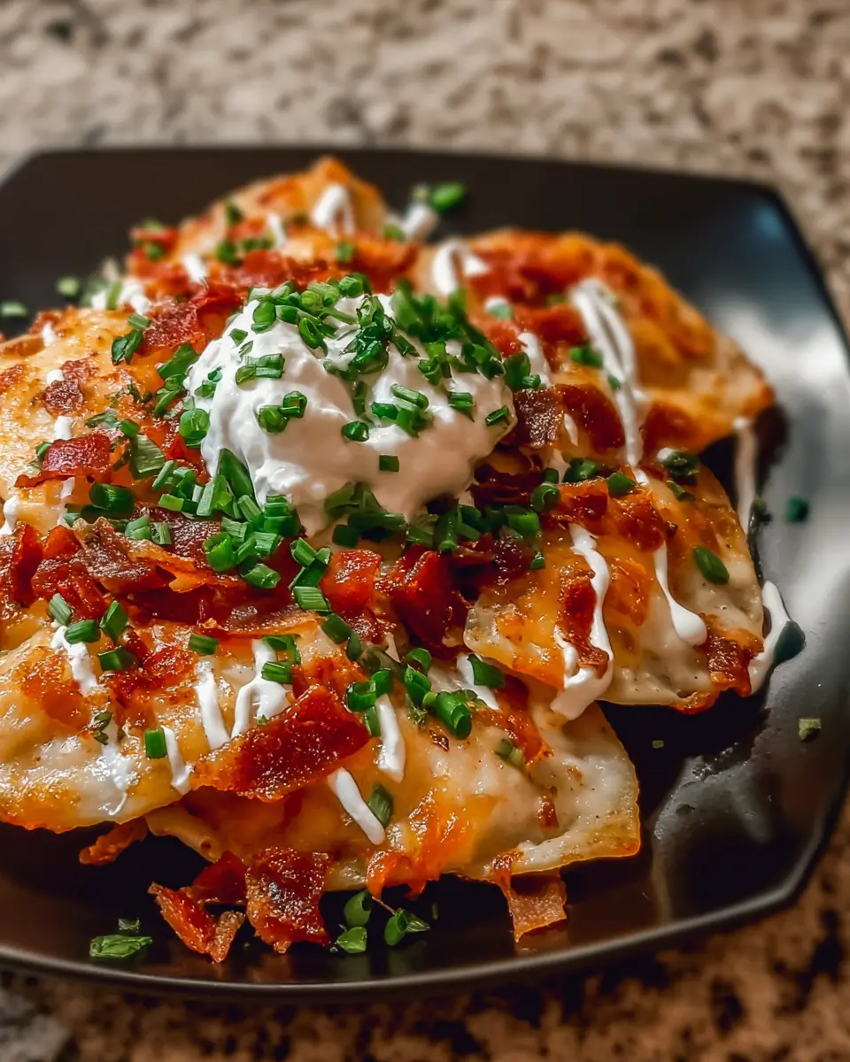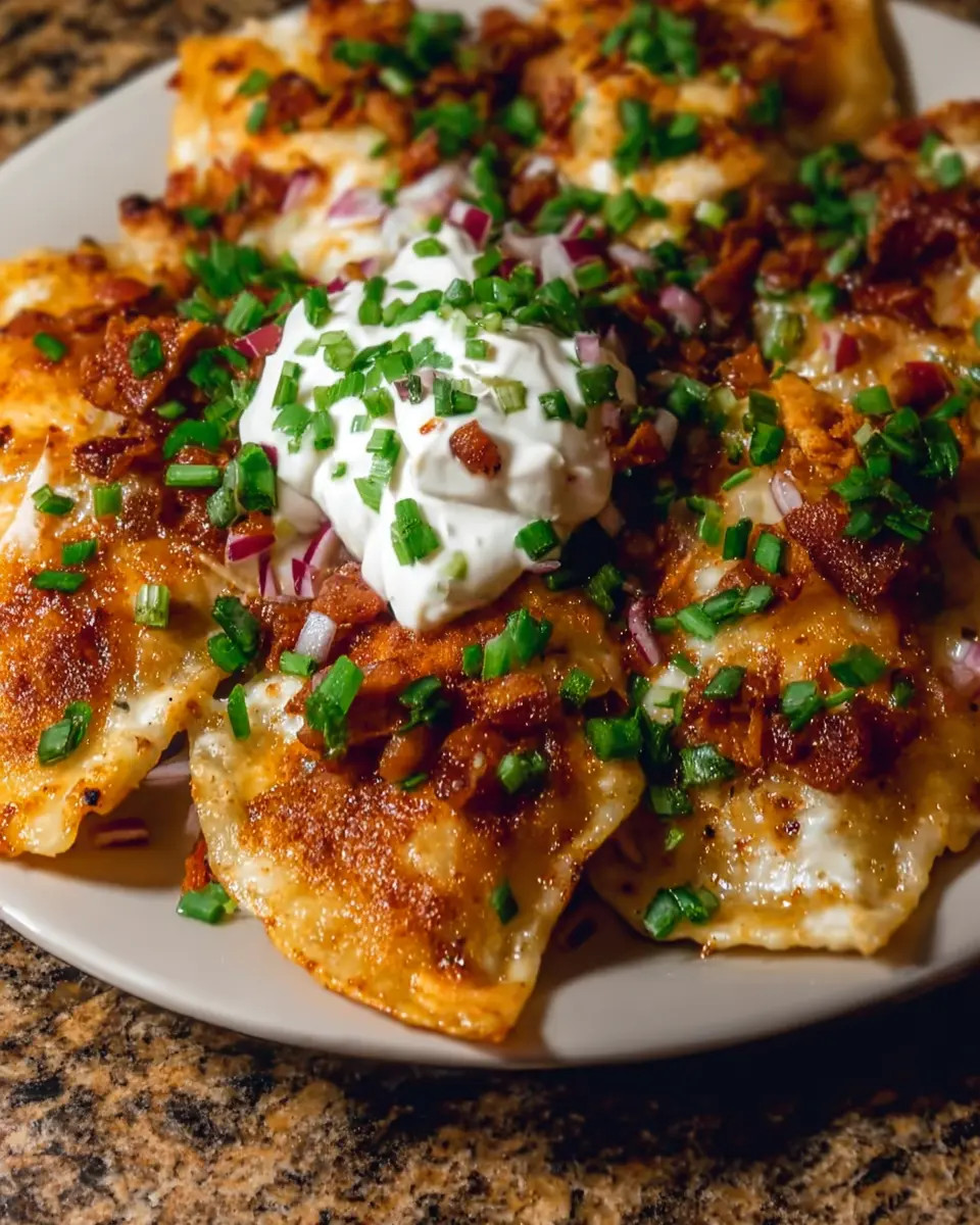 These Pierogi Nachos are a delicious twist on the classic nachos, featuring turkey bacon and chicken ham for a rich and savory experience.