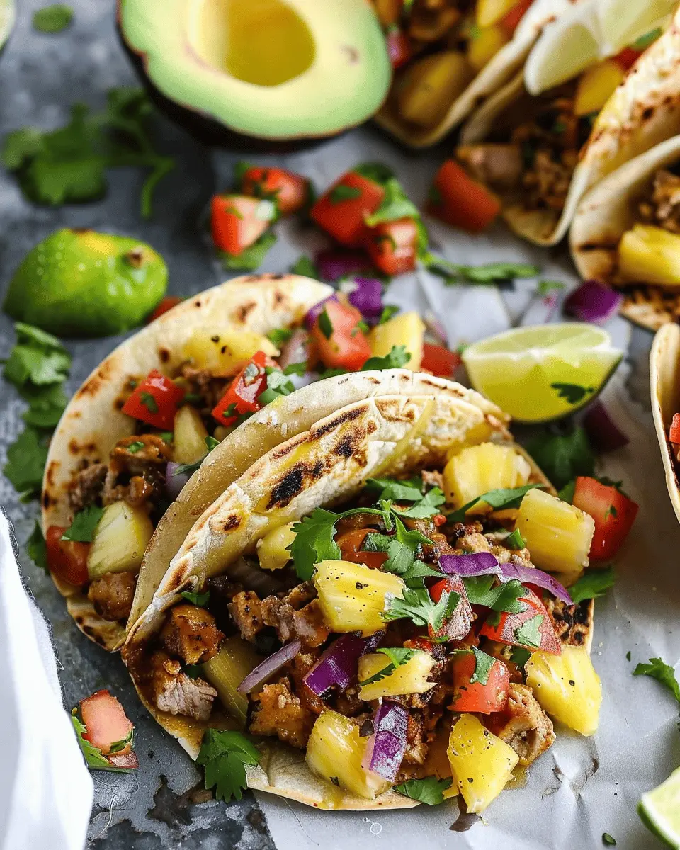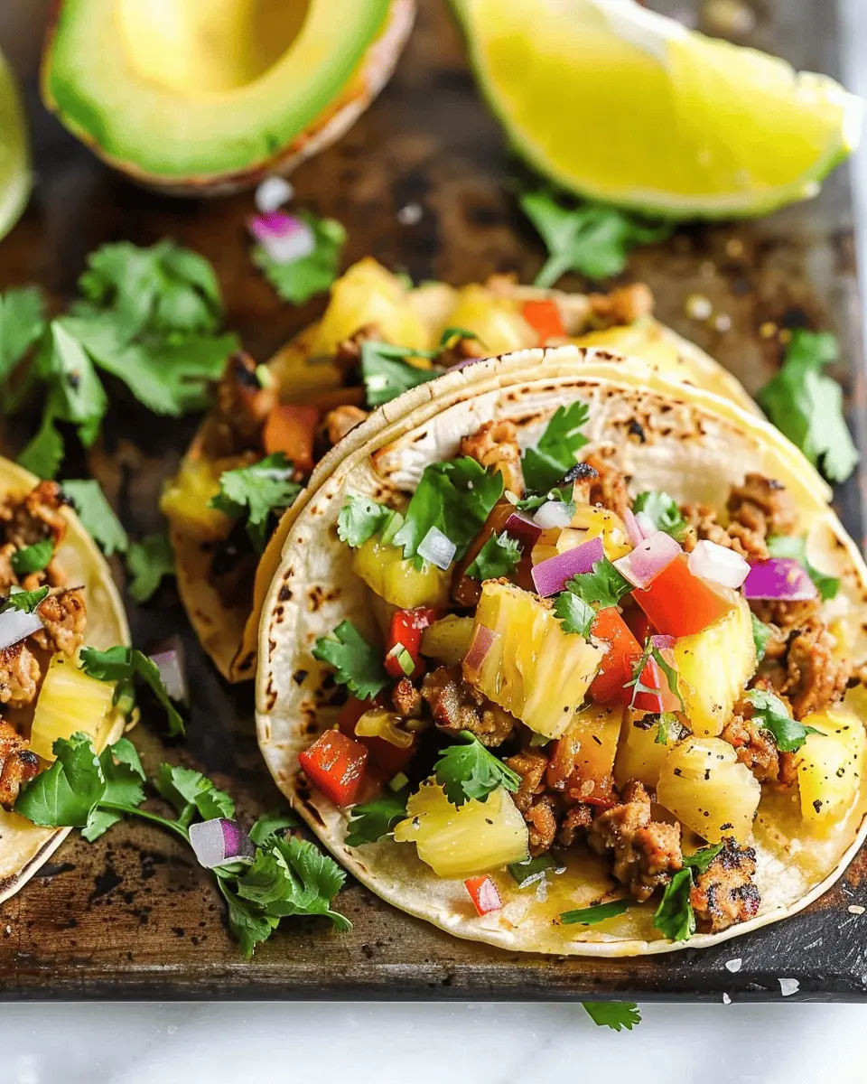 A delicious take on traditional tacos featuring turkey and pineapple for a burst of flavor.