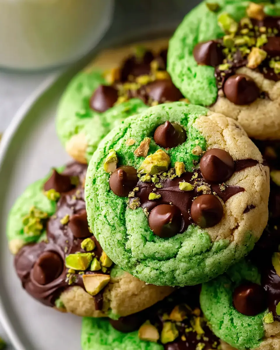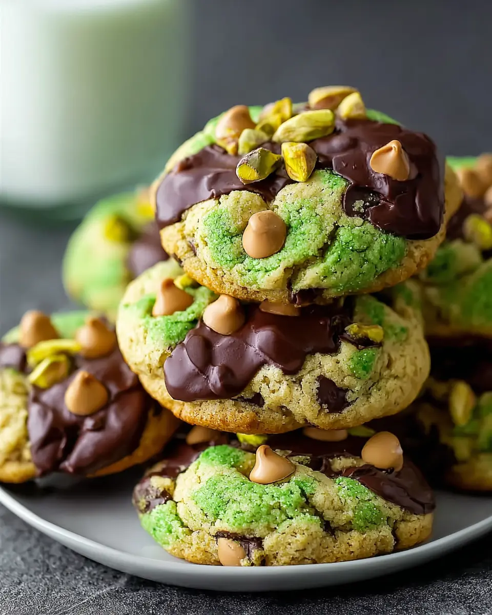Festive Vibes: The delightful green from the pistachios and the earthy tones of the chocolate make these cookies visually appealing, perfect for festive occasions. They are great for St. Patrick’s Day celebrations or any event where you want a touch of whimsy.