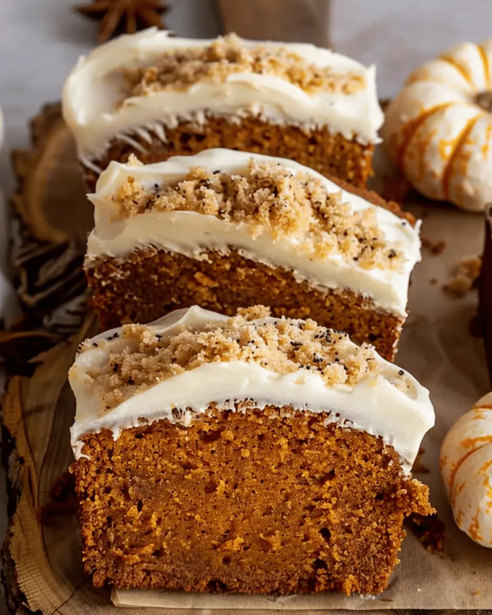 Keywords: Pumpkin Bread, Cream Cheese Frosting, Cozy Recipe