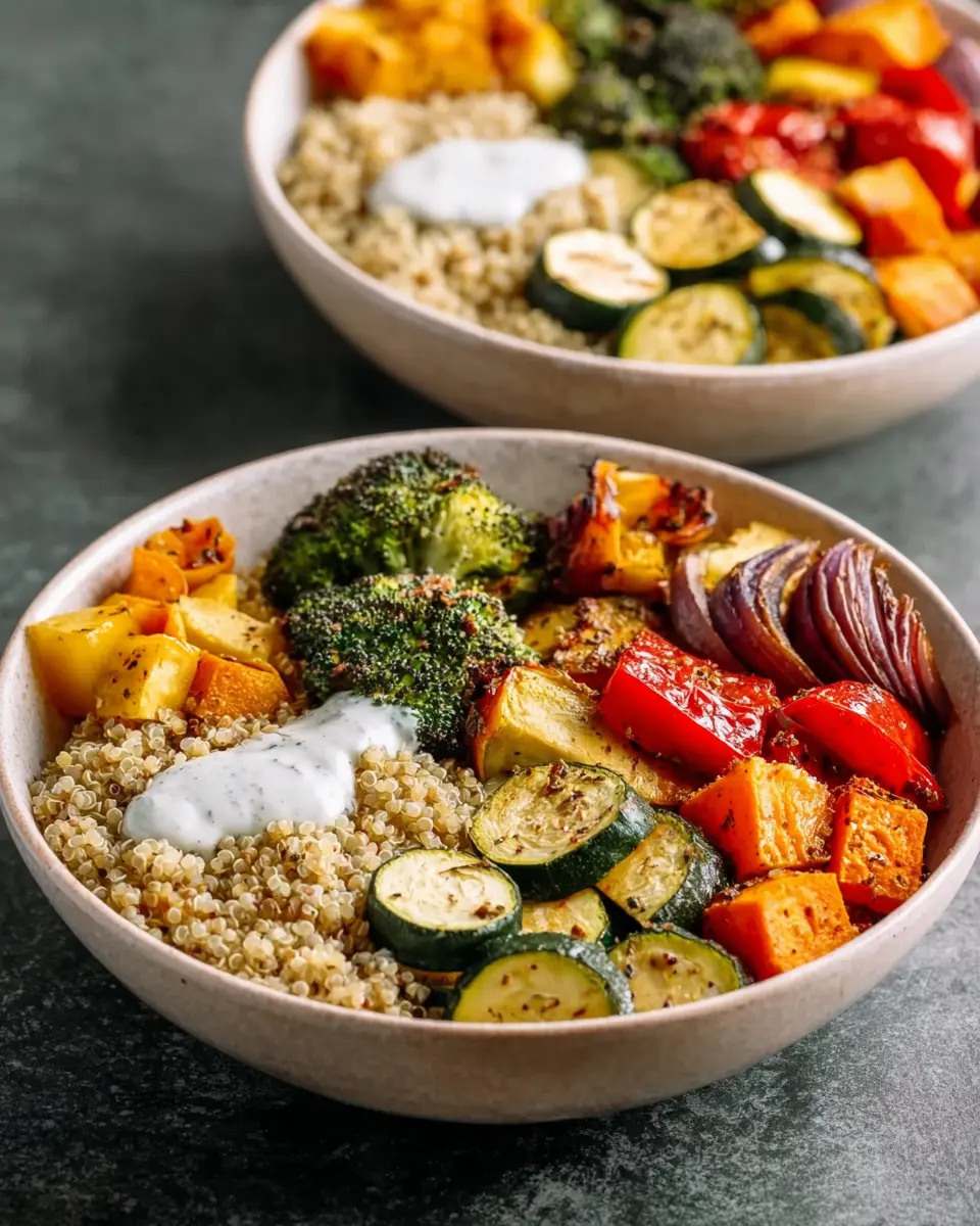 Quinoa Roasted Veggie Bowls are a nutritious and flavorful dish, perfect for a healthy meal.