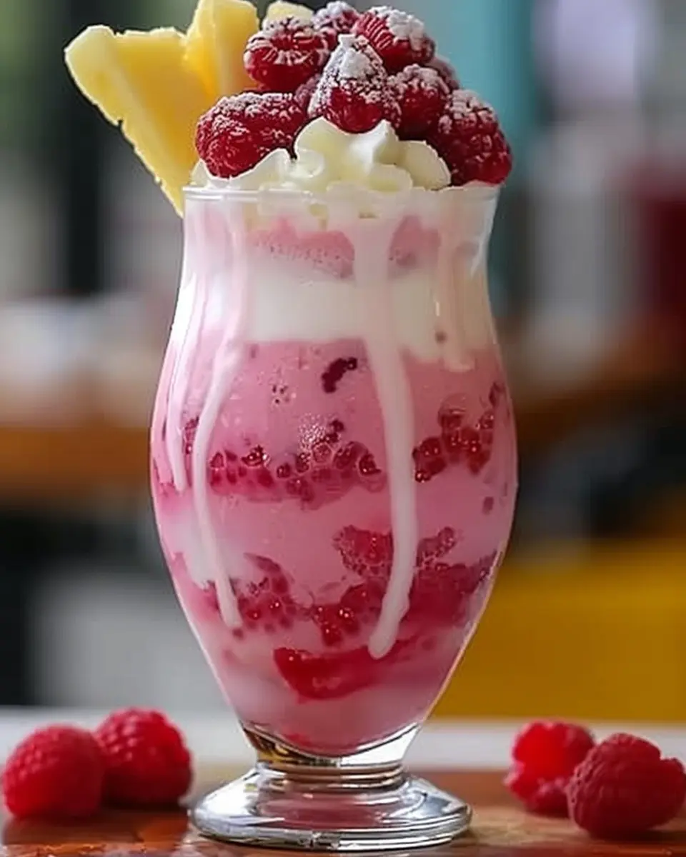 A refreshing twist on the classic piña colada, infused with the vibrant flavor of raspberries.