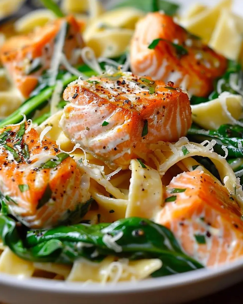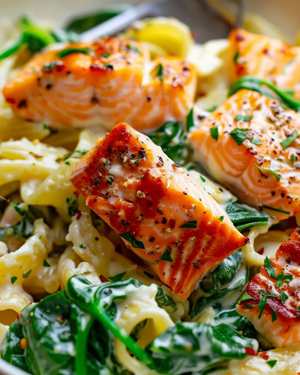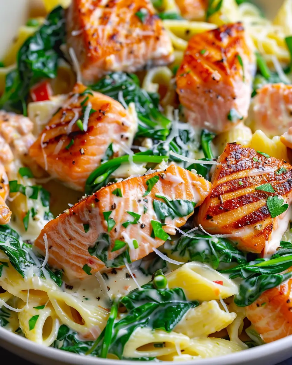 PrintSalmon Spinach Pasta Dish: A Delicious and Healthy Recipe to Try