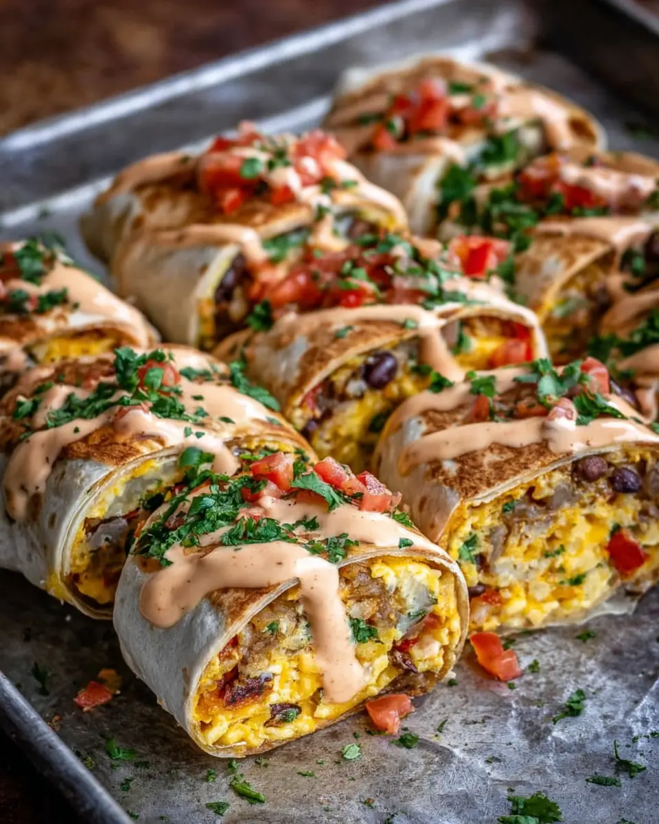 PrintSheet Pan Breakfast Burritos with Creamy Chipotle Sauce: Easy and Satisfying