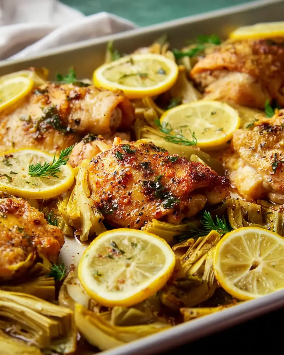 Sheet Pan Lemon Artichoke Chicken Thighs
