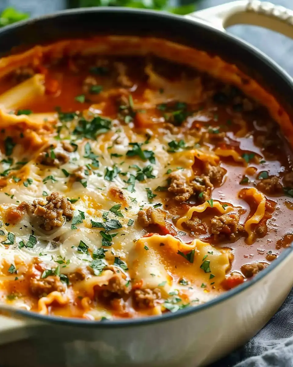 Simple Lasagna Soup with Sausage and Ground Beef for Cozy Nights