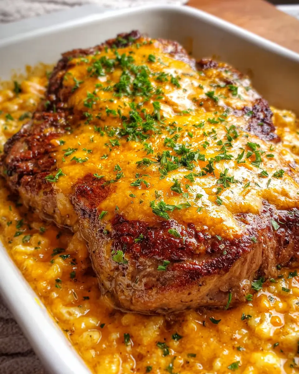 PrintSmothered Cheddar Beef Chop Bake: A Cozy and Cheesy Delight