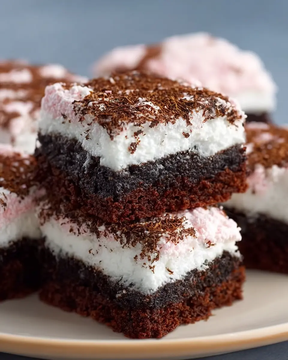 Visual appeal: With their snowy-white topping against the rich cocoa base, these brownies are as eye-catching as they are delicious. They’re perfect for gatherings or a cozy night in when you want to impress without spending hours in the kitchen.