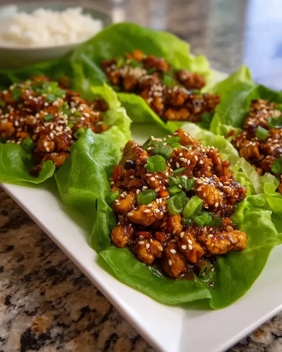 PrintSticky Sesame Chicken Lettuce Wraps: Easy, Flavorful & Fresh