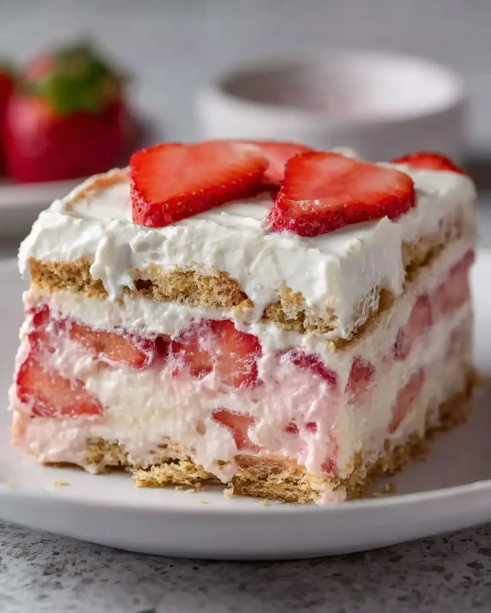 If you find yourself with leftover strawberries and cream eclair cake—lucky you! To keep it fresh, cover the cake tightly with plastic wrap or place it in an airtight container. You can store it in the refrigerator for up to three days. Just keep in mind that the graham crackers may become a bit soggy over time, but it’ll still be tasty. If you want to enjoy it later, consider freezing individual slices wrapped well in plastic wrap and foil.
