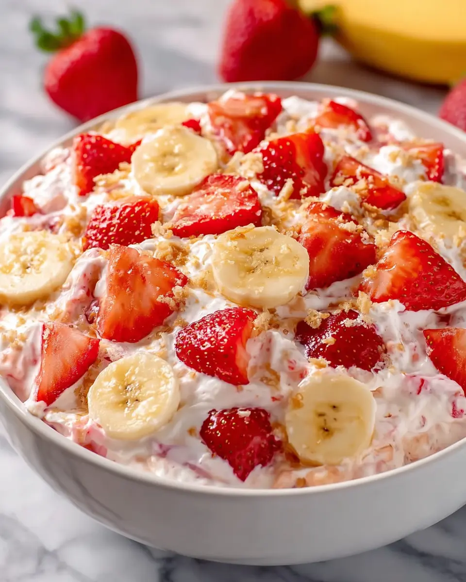 PrintStrawberry Banana Cheesecake Salad: The Best Sweet Treat for Summer