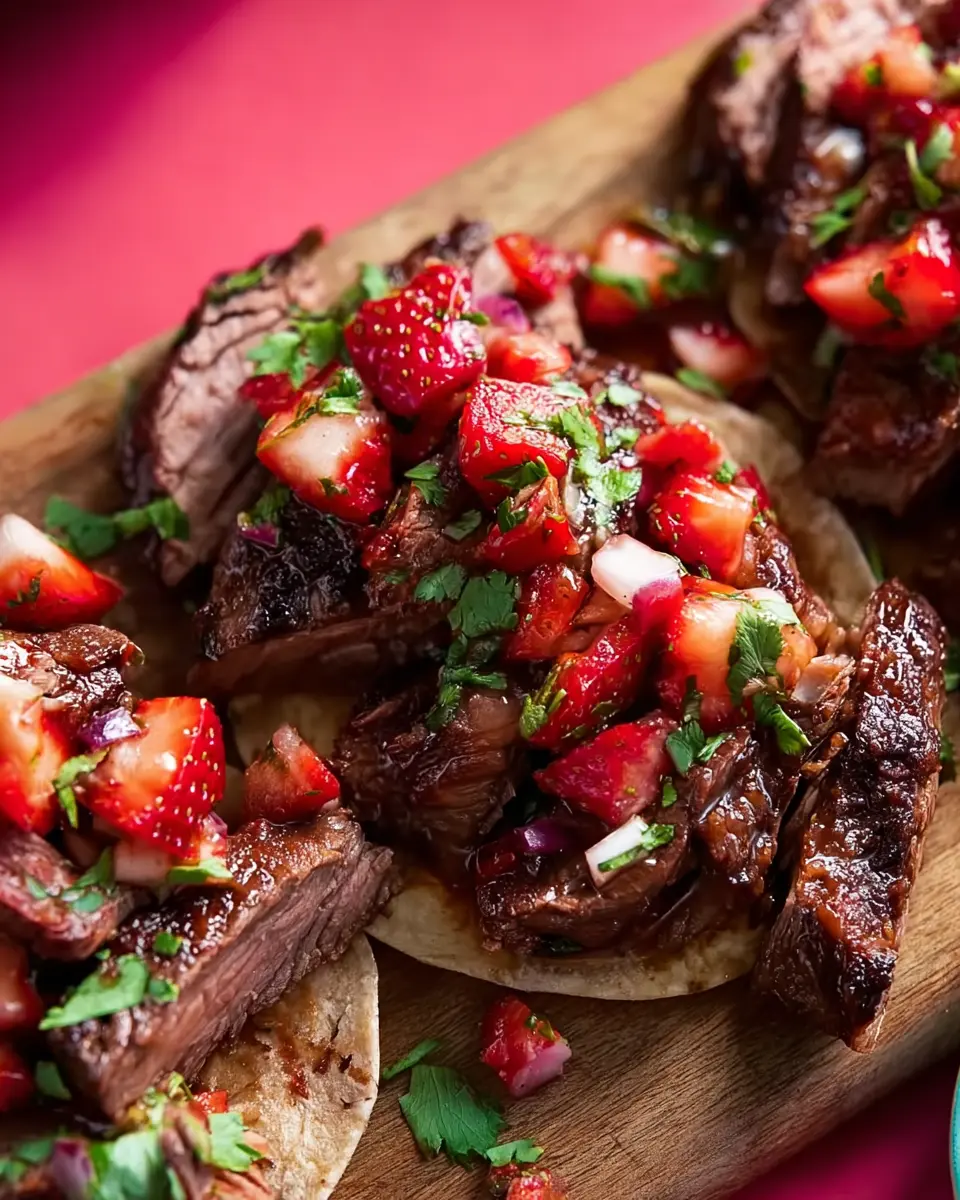 While your beef is resting, let’s whip up a fresh strawberry salsa to complement your dish. Dice a cup of strawberries and mix them with half a diced red onion, a handful of fresh mint or cilantro, and the juice of a lime. This salsa brings a zesty freshness that balances beautifully with the sweet, smoky beef.