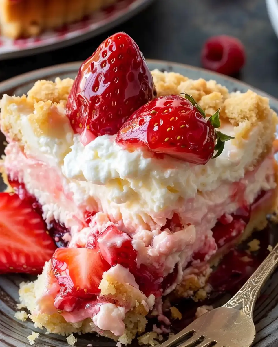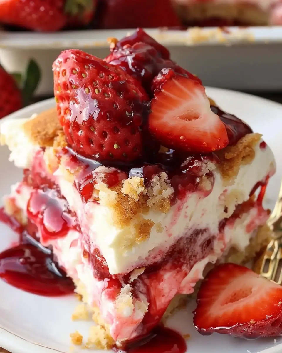 Keywords: strawberry cheesecake, dump cake, easy dessert, indulgent treat