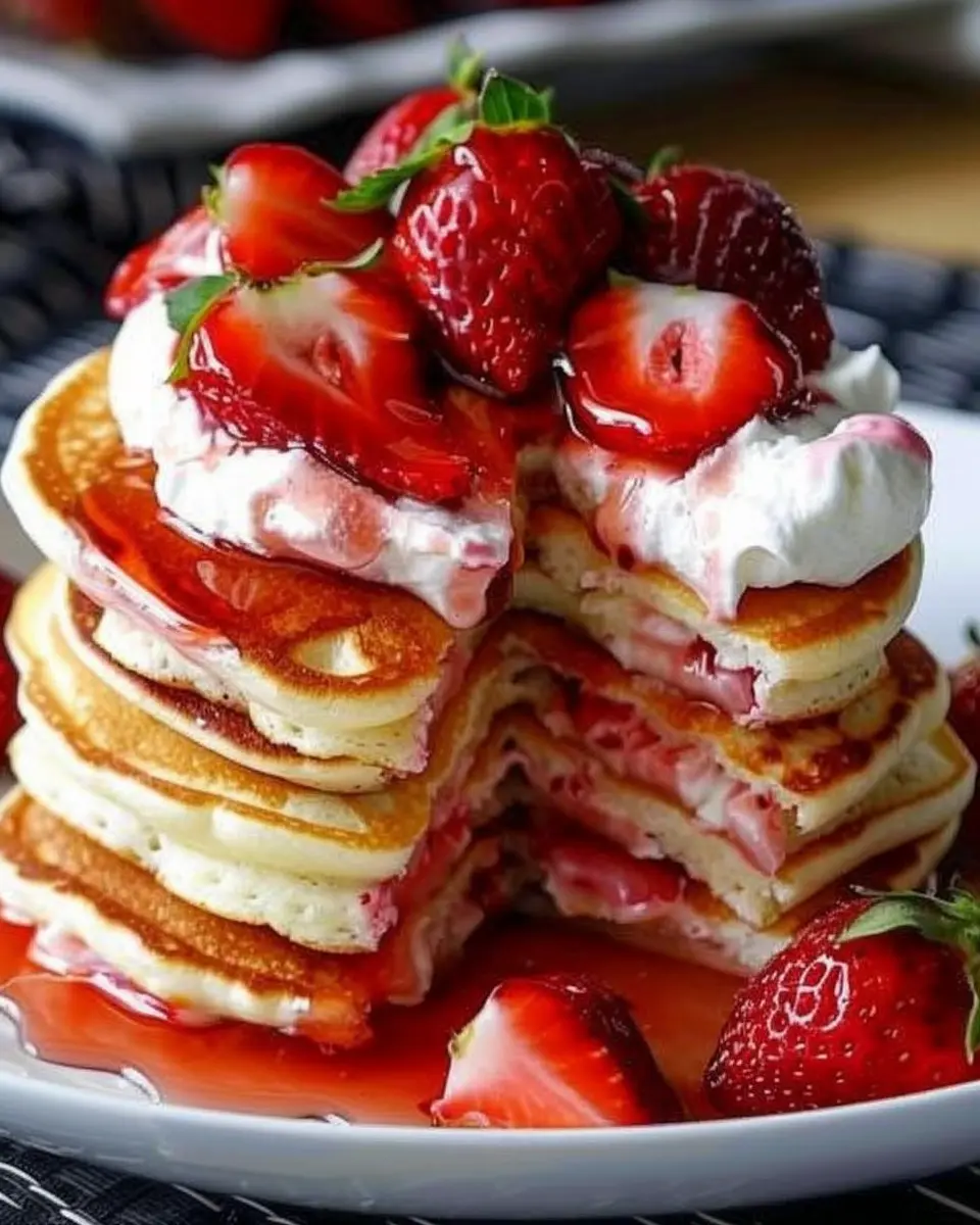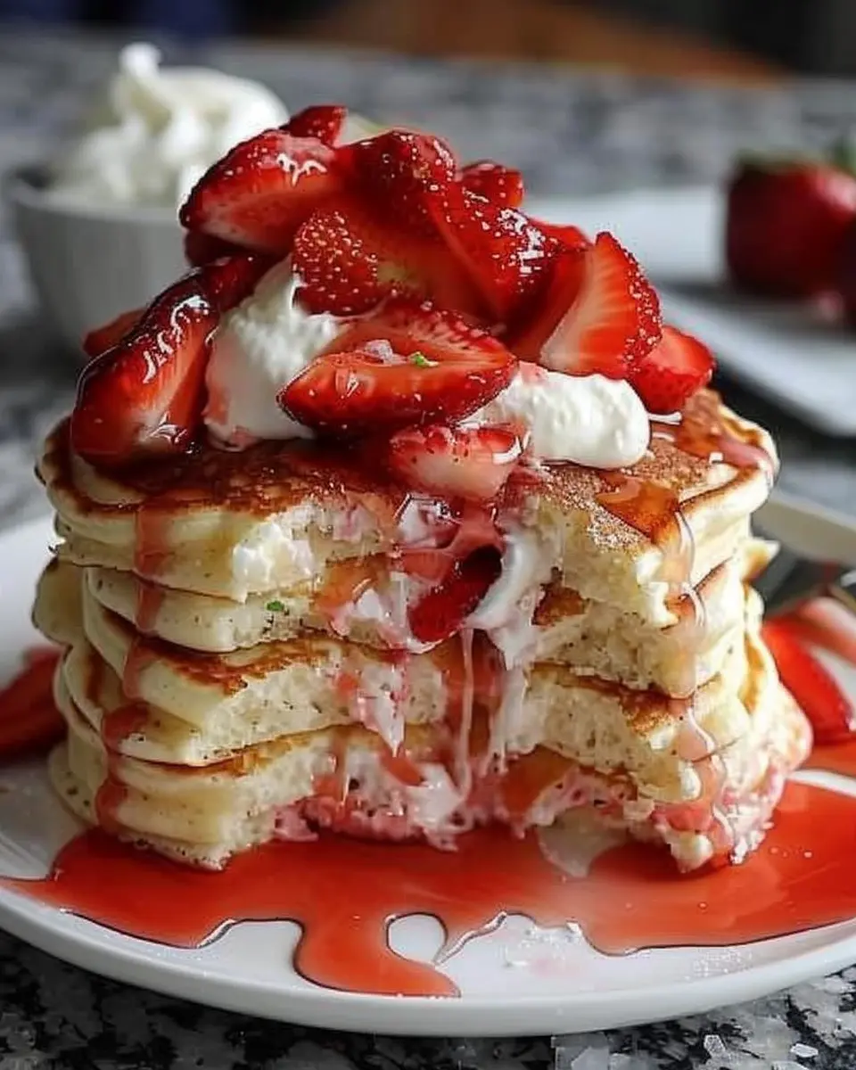 And there you have it—a delightful plate of strawberry cheesecake pancakes ready to impress your friends or satisfy your morning craving. Perfect for a lazy Sunday brunch or a special occasion, these pancakes promise to make your breakfast feel like an indulgent treat. Enjoy every bite!