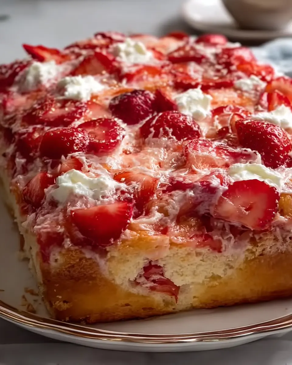 There’s something special about strawberry earthquake cake that turns any occasion into a celebration. For an unforgettable dessert experience, serve slices warm, allowing the gooey cream cheese filling to ooze slightly. Top each piece with a dollop of fresh whipped cream or a scoop of vanilla ice cream for that extra touch of indulgence. If you want to elevate it further, sprinkle some fresh strawberries on top for a bright, seasonal flair.