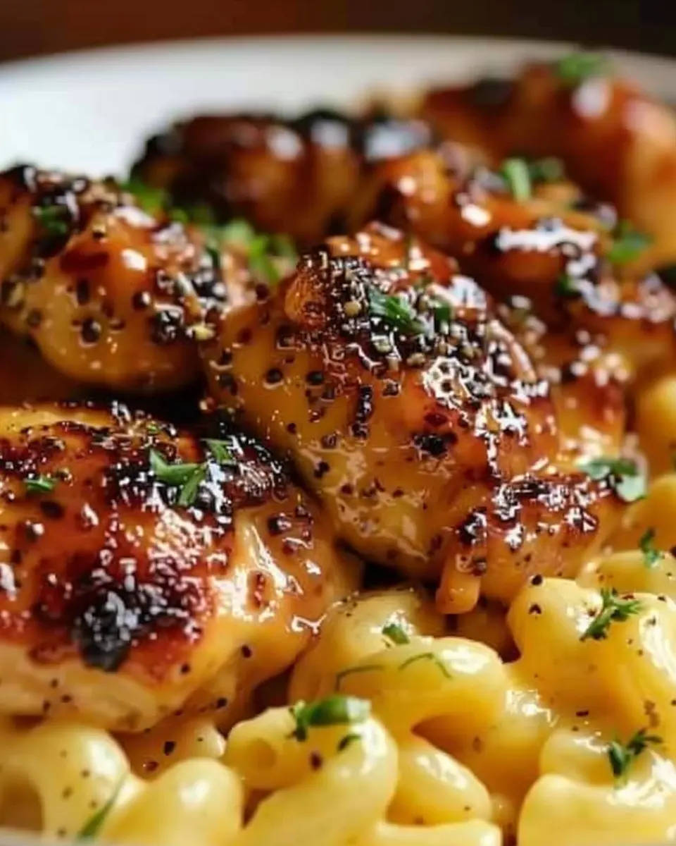 Imagine coming home after a hectic day, ready to unwind. You’ll be greeted by the unmistakable scent of honey and spices wafting through your kitchen. This dish combines sweet honey with the subtle heat of black pepper, creating a mouthwatering experience that’s perfect to enjoy with family or share with friends. Pairing it with creamy macaroni and cheese adds a comforting twist that balances the spicy elements of the chicken, making it a thoughtful meal choice any day of the week.