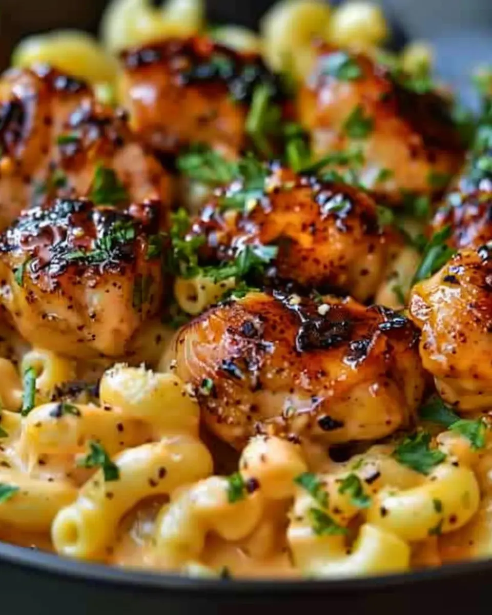 Sweet and Spicy Honey Pepper Chicken with Macaroni and Cheese is the ultimate comfort food that combines tender chicken with a deliciously sweet and spicy glaze, served alongside creamy macaroni and cheese.